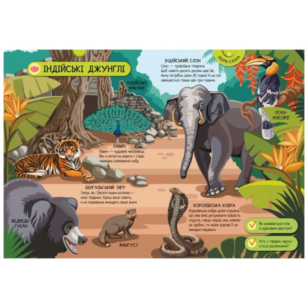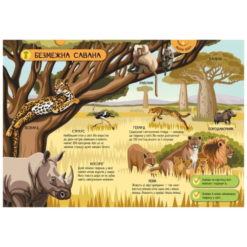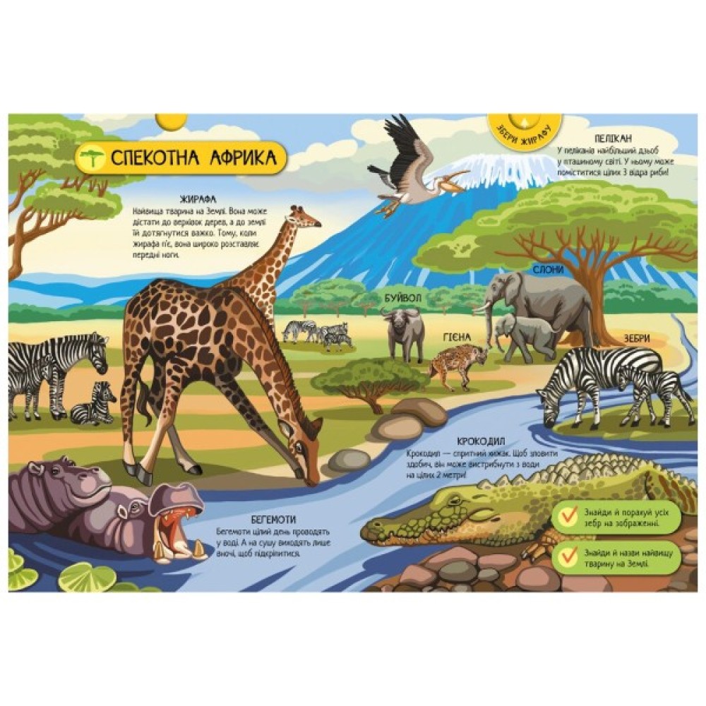 Книжка «Тварини світу» — це перша енциклопедія маленького дослідника, яка познайомить його з екзотичними тваринами і розкаже найцікавіші факти з їхнього життя. Із цією книжкою малюк точно не занудьгує: яскраві та детальні картинки, які можна розглядати годинами; безліч тварин для знайомства; короткі та зрозумілі для дитини тексти про мешканців нашої планети; і, звичайно, ігри на увагу! Але найцікавіше в цій книжці — аж п'ять 3D-моделей тварин, які дитина зможе скласти сама! Просто витягайте аркуш із деталями тварин з потаємної кишені і складайте нових друзів для гри!