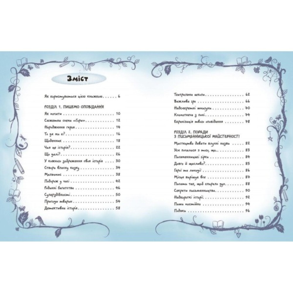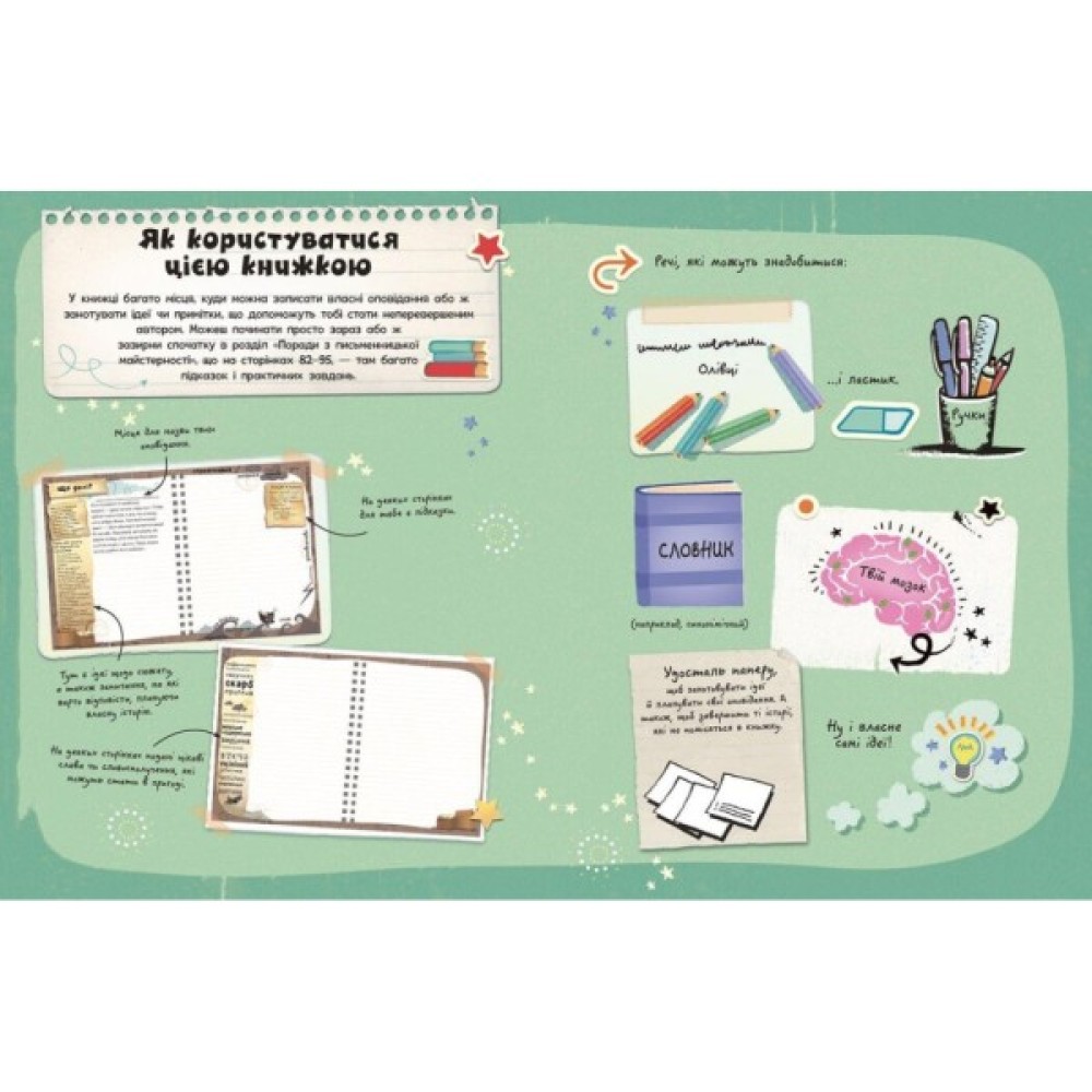 Створити власну збірку оповідань, навчитися писати шкільні твори так, щоб навіть вчителька позаздрила, чи весело проводити час, подорожуючи власноруч створеними світами — яку з цих здібностей обереш? Хоча не поспішай із відповіддю. Нам тут підказують, що ти можеш отримати їх усі, просто обравши цю книгу! У ній є поради з письменницької майстерності і вправи для тренування навичок письма, а ще теми й ідеї для створення аж 20 власних оповідань у найрізноманітніших жанрах: подорож у часі, пригоди супергероїв, жахастик, детектив і багато-багато інших.