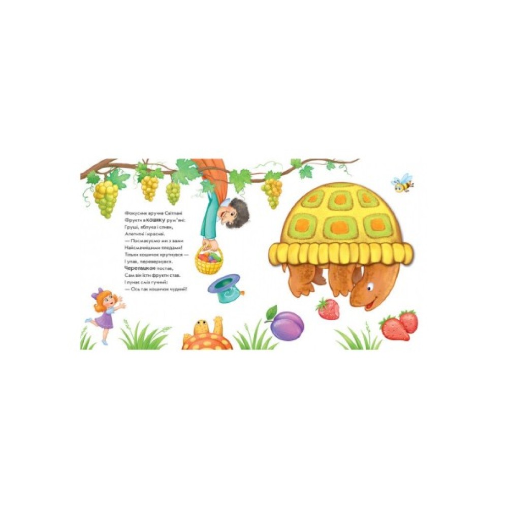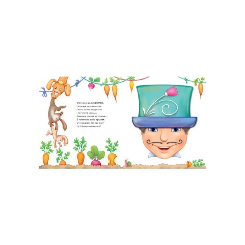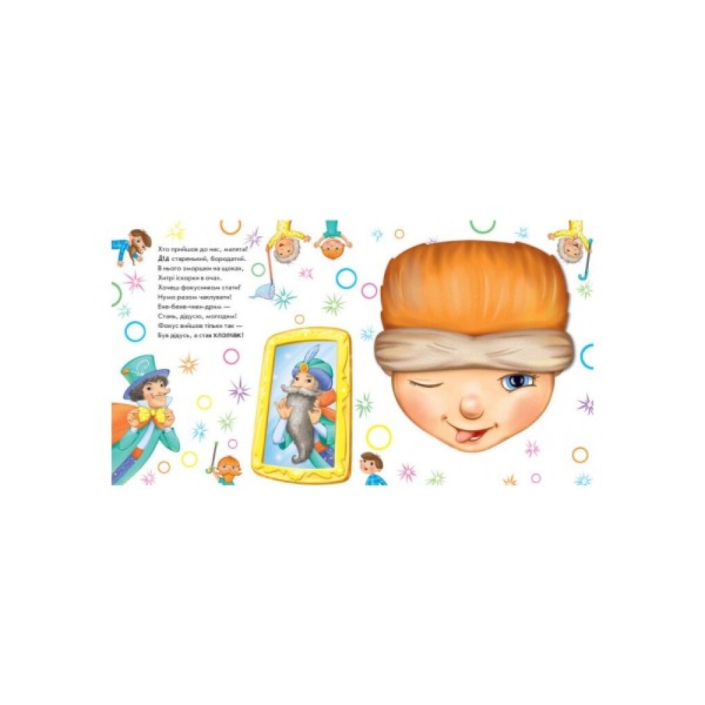 Ці незвичайні книжки-іграшки запрошують малюка пограти у фокусника-чарівника. Варто лише сказати чарівні слова та обернути картинку, і злюка-принцеса перетвориться на красуню-троянду, млин — на пароплав, а кошик з фруктами — на черепашку.