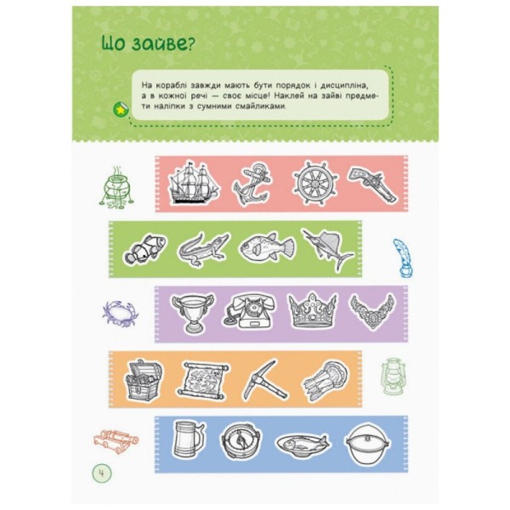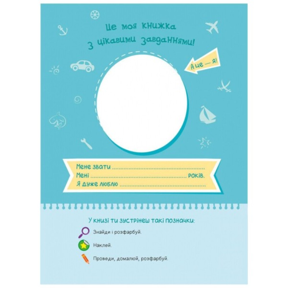 Лабіринти, розмальовки, наліпки — усе це під однією обкладинкою. Піктограми дозволяють дитині виконувати завдання без участі дорослих. Багатосторінкова книжка - багато цікавезних завдань, 76 наліпок.