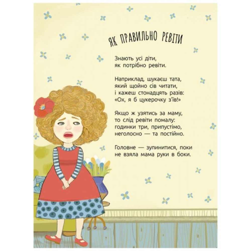 Часом неабияк корисно читати... інструкції. Олеся Мамчич у збірці поезій для дітей дає цілий перелік порад, як правильно ревіти. А ще розповідає, що робити, коли в домі завелася мишка, як відлякати всі страхіття світу та де дістати козинаки. Героями віршів Олесі є мудрі кроти, вилупата лопата, хижі лижі, хамелеон, пакетики, летючий віслючок, валіза… Тексти авторки сповнені незвичайних рим, порівнянь, словесних каламбурів, тому неодмінно розважать як дітей, так і дорослих.