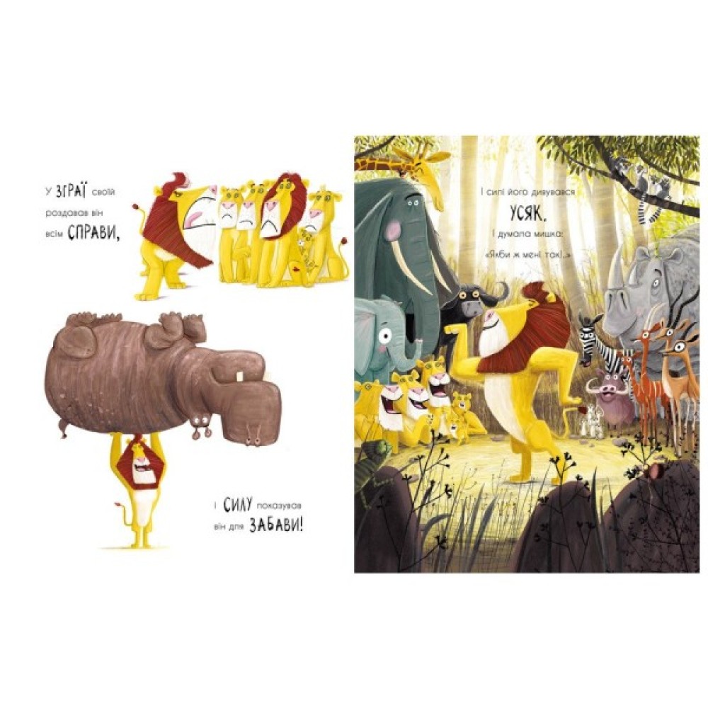 Віршована історія про впевненість у собі, самооцінку та сором’язливість. Головна героїня Мишка вирушає у подорож, щоб навчитися рикати, як Лев. Але, як виявилося, навіть найбільші, найсильніші тварини іноді лякаються... і навіть у найменших істот може бути левине серце! Книжка за правом вважається класикою сучасної дитячої літератури та перекладена більш ніж 30 мовами світу.