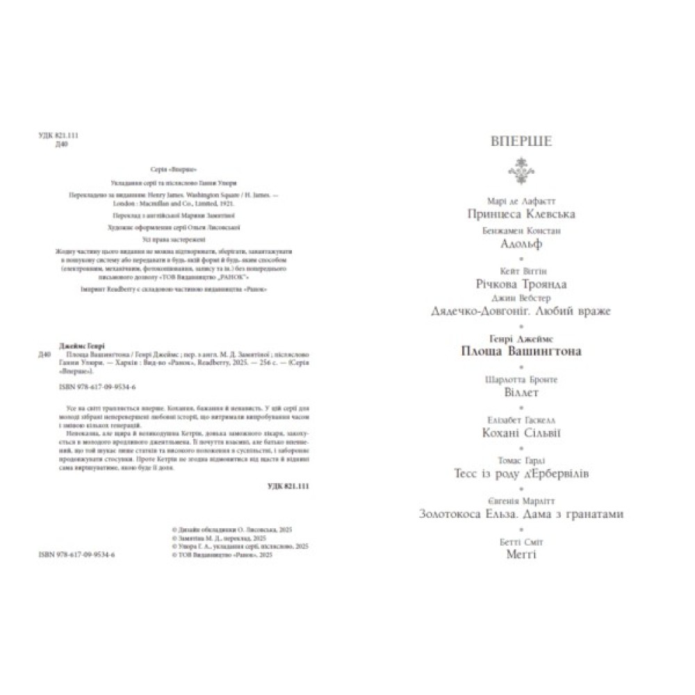 Книга, Площа, Вашингтона, Генрі, Джеймс, Readberry, 9786170995346