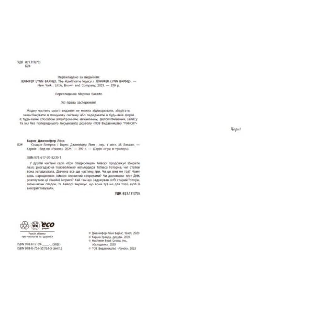Спадок Готорна - Дженніфер Лінн Барнс