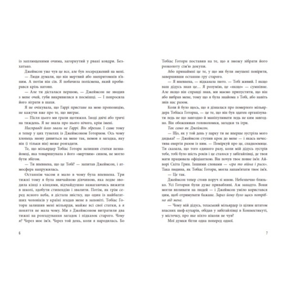 У другій частині серії «Ігри спадкоємців» Айворі продовжує збирати пазл, розгадуючи головомку мільярдера Тобіаса Готорна, чиї статки вона успадкувала. Дівчина все ще частина гри. Чи це вже не гра? Чому день народження Айворі оповитий секретами? Чи допоможе тест ДНК розплутати ці сімейні інтриги? Хай там що задумував собі старий Готорн, залишаючи спадок, та Айворі вирішує, що вона тут не для того, щоб її використовували.