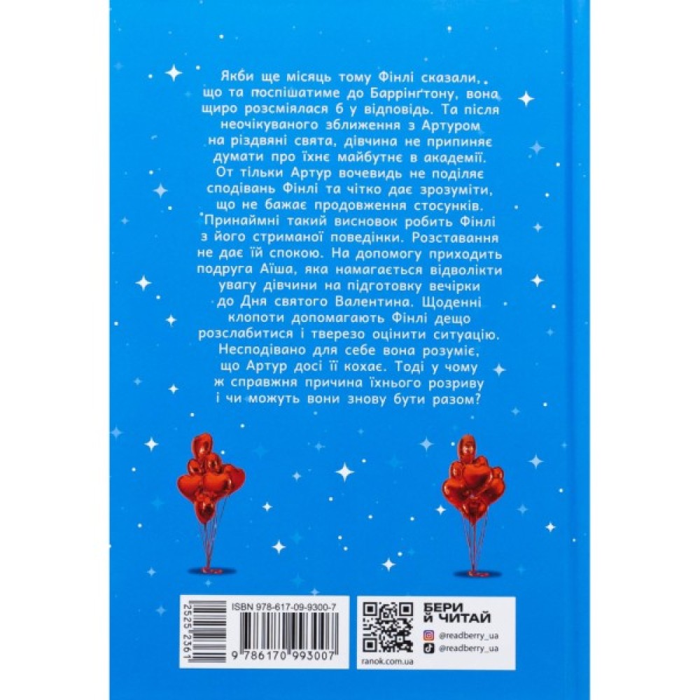 Зимові канікули добігли кінця, і Фінлі нарешті повертається до навчання в Баррінґтоні. Там вона сподівається знову побачитися з Артуром — хлопцем, який подарував їй незабутні різдвяні свята. Однак після повернення до академії він усіляко уникає спілкування, і це неабияк бентежить дівчину. Зрештою їм вдається зустрітися сам на сам, але емоції стають на заваді конструктивному діалогу. Пара розриває стосунки.Фінлі поринає в навчання й позакласну діяльність, і навіть долучається до організації святкування Дня святого Валентина. Втім, думки про Артура не полишають її. Серце підказує Фінлі, що він досі в неї закоханий, а причина їхнього розставання набагато складніша, ніж банальна зрада. Продовження зворушливої історії Фінлі й Артура у новому любовному романі від Трейсі Андрін.