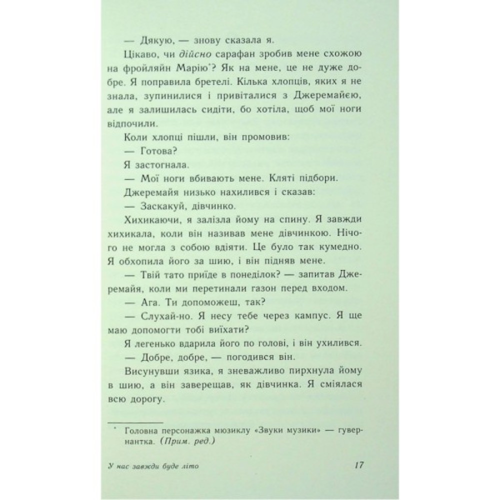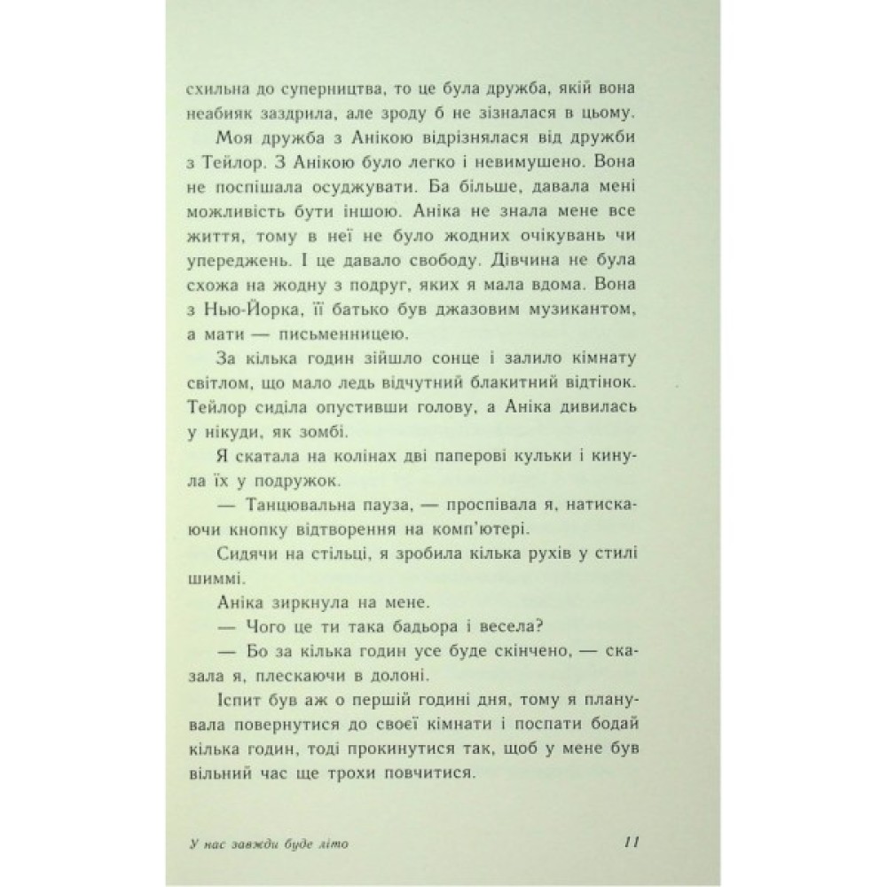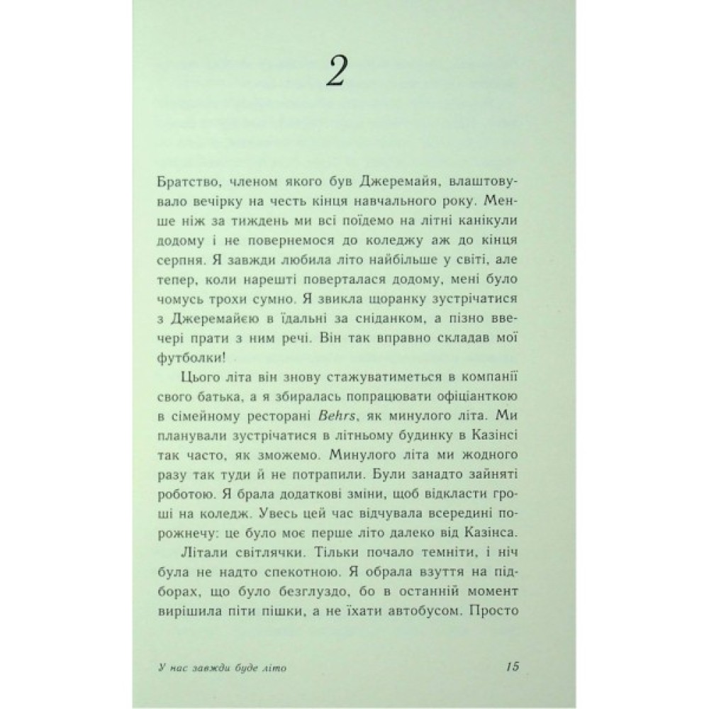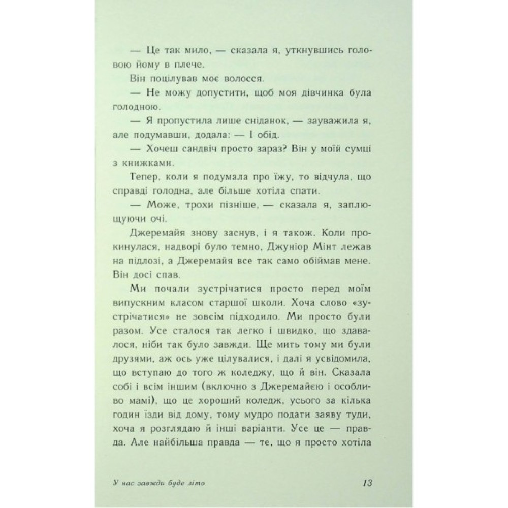 Любовний роман для підлітків «У нас завжди буде літо» американської письменниці Дженні Хан є завершальною частиною бестселерної трилогії «Моє літо». Оповідь ведеться від першої особи, переважно з погляду Беллі, проте є кілька розділів з перспективи Конрада. Це допомагає читачам зануритися в емоції, сумніви та спогади героїв. Авторка використовує флешбеки, щоб показати, як любов та дружба розвиваються з часом. Хан створює емоційну напругу, коли Беллі має вибирати між коханням, вірністю та самопізнанням. Окремим персонажем можна виділити будиночок у Казінс-Біч, який символізує ностальгію, молодість, дружбу й сім’ю.