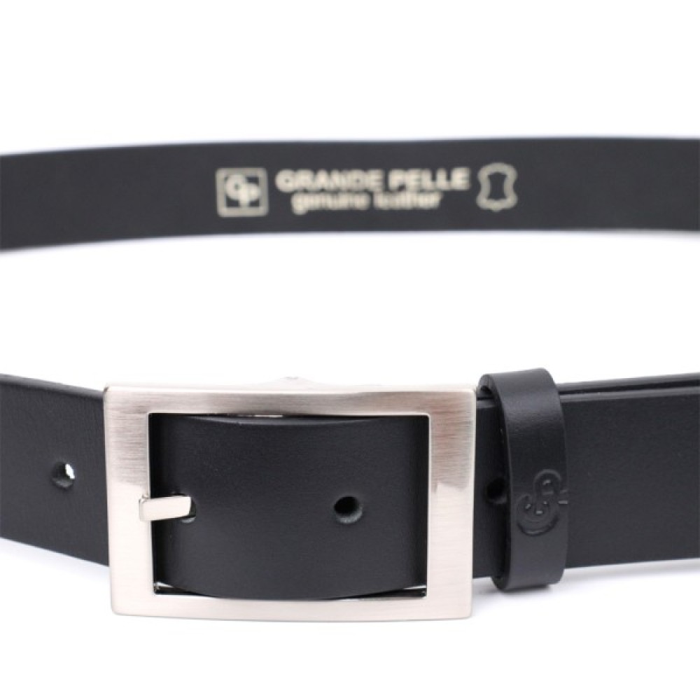 Ремінь, Grande, Pelle, Шкіряний, брючний, з, квадратною, пряжкою, Чорний, 11678
