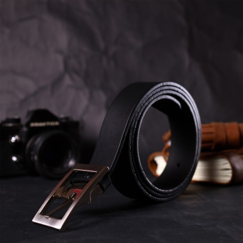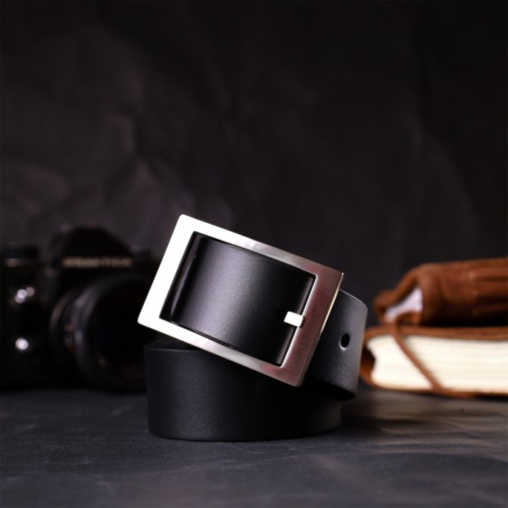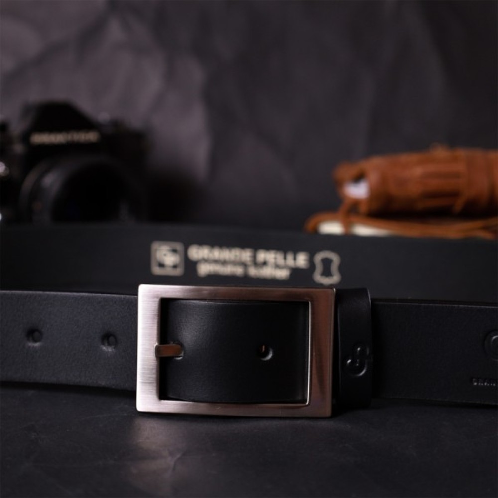 Ремінь Grande Pelle Шкіряний брючний з квадратною пряжкою Чорний (11678)