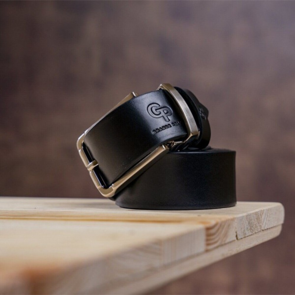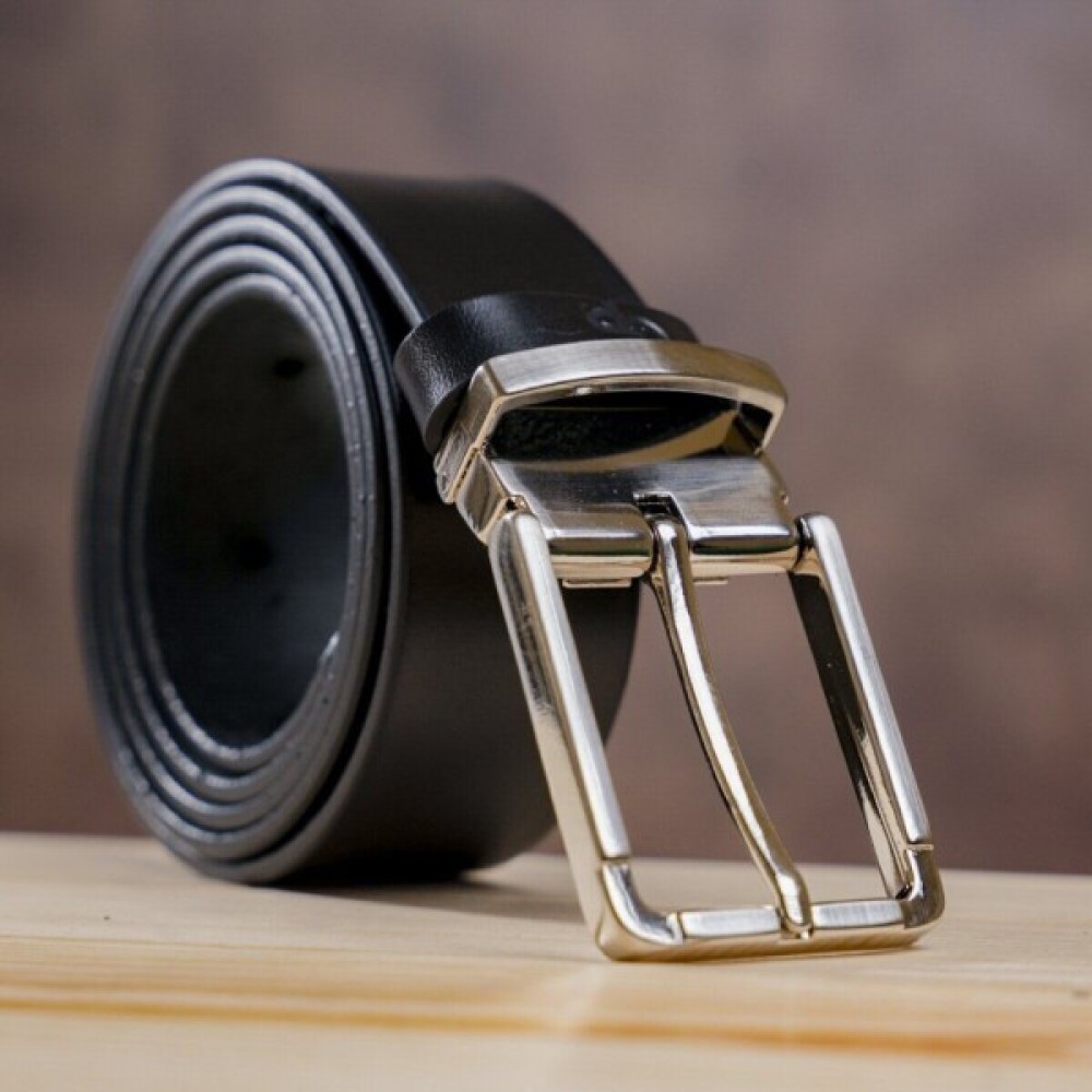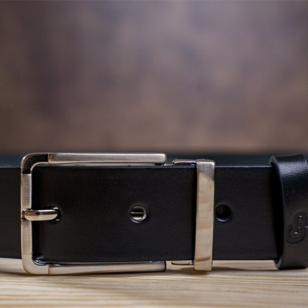 Першокласний чоловічий ремінь, чорного кольору, виготовлений з натуральної шкіри високої якості.