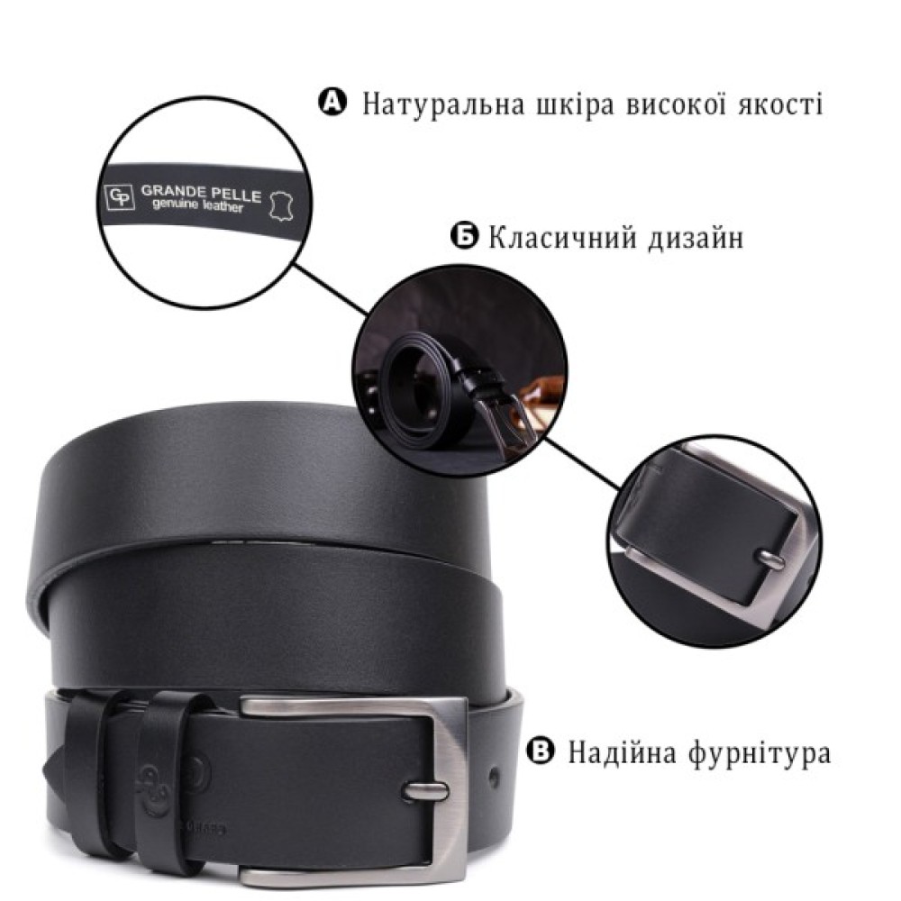 Ремінь Grande Pelle Шкіряний Чорний (11690)