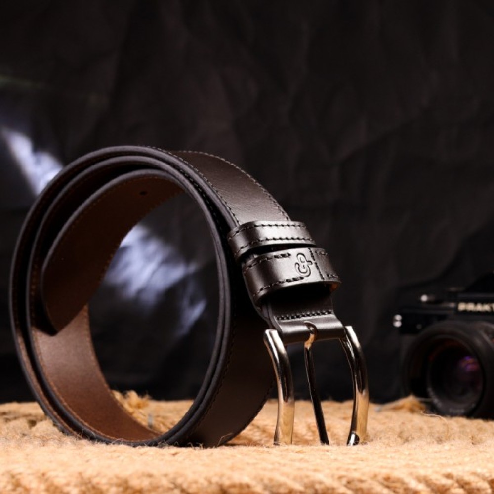 Оригінальний ремінь під джинси з натуральної італійської шкіри, в коричневому кольорі від українського виробника. Аксесуар має гладку фактуру, акуратно прошитий по краю рівним рядком, довжина регулюється в меншу сторону. Пряжка класична в мінімалістичному дизайні, виробник використовує виключно італійську фурнітуру, яка не темніє, не дряпається та не викликає алергії. Якісний шкіряний ремінь стане гарним подарунком на будь-яке свято.