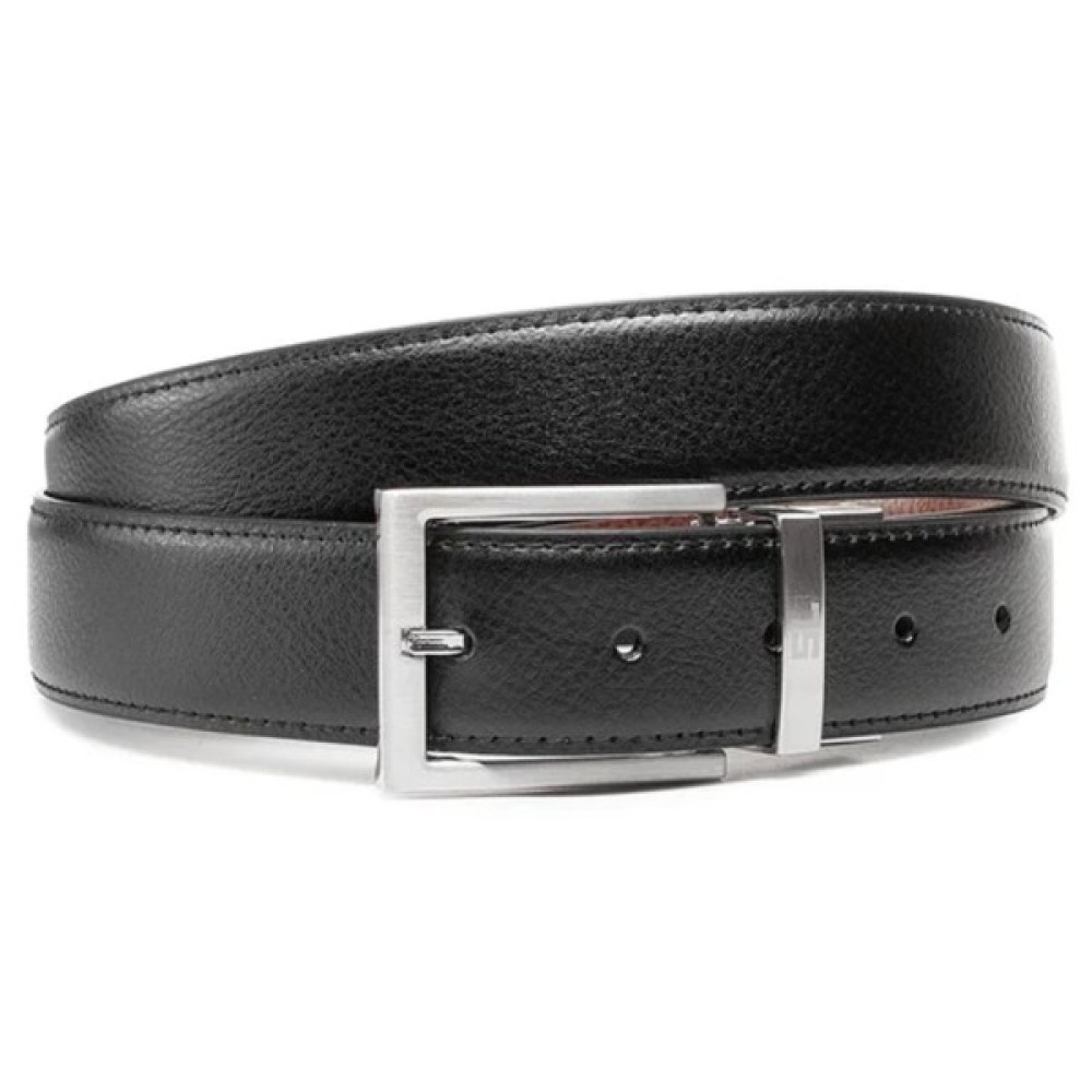 Ремінь виготовлений із натуральної шкіри високої якості, приємної на дотик та стійкої до зносу. Ширина полотна 3.3 см — оптимальна для більшості класичних та джинсових петель для ременя. Металева пряжка в класичному стилі повертається навколо своєї осі, що дозволяє за лічені секунди змінити колір ременя. Металеві петлі надійно фіксують ремінь у застібнутому стані.