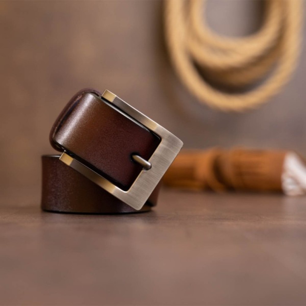Ремінь, Vintage, Чоловічий, з, класичною, пряжкою, Коричневий, 20357