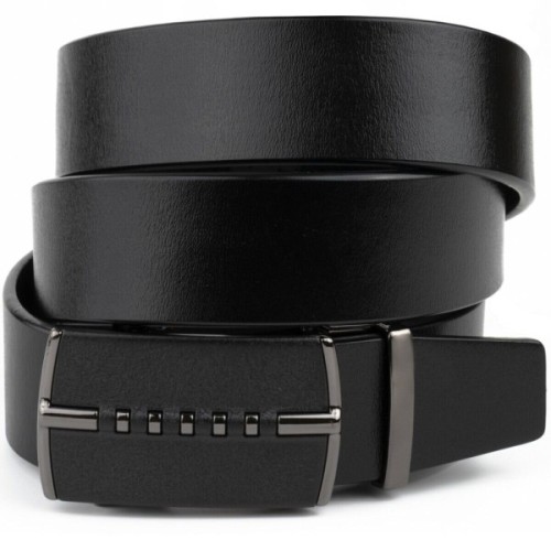 Шкіряний чоловічий солідний ремінь класичного чорного кольору, але при цьому з оригінальним дизайном. Родзинкою моделі буде його пряжка матова затемнена. Виконана з якісного сплаву. Шкіряний ремінець дуже універсальний і входить в базовий гардероб будь-якого чоловіка.
