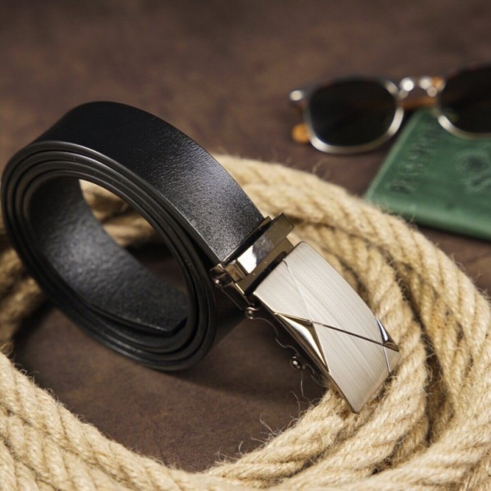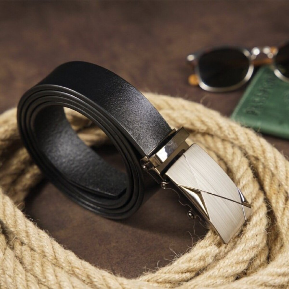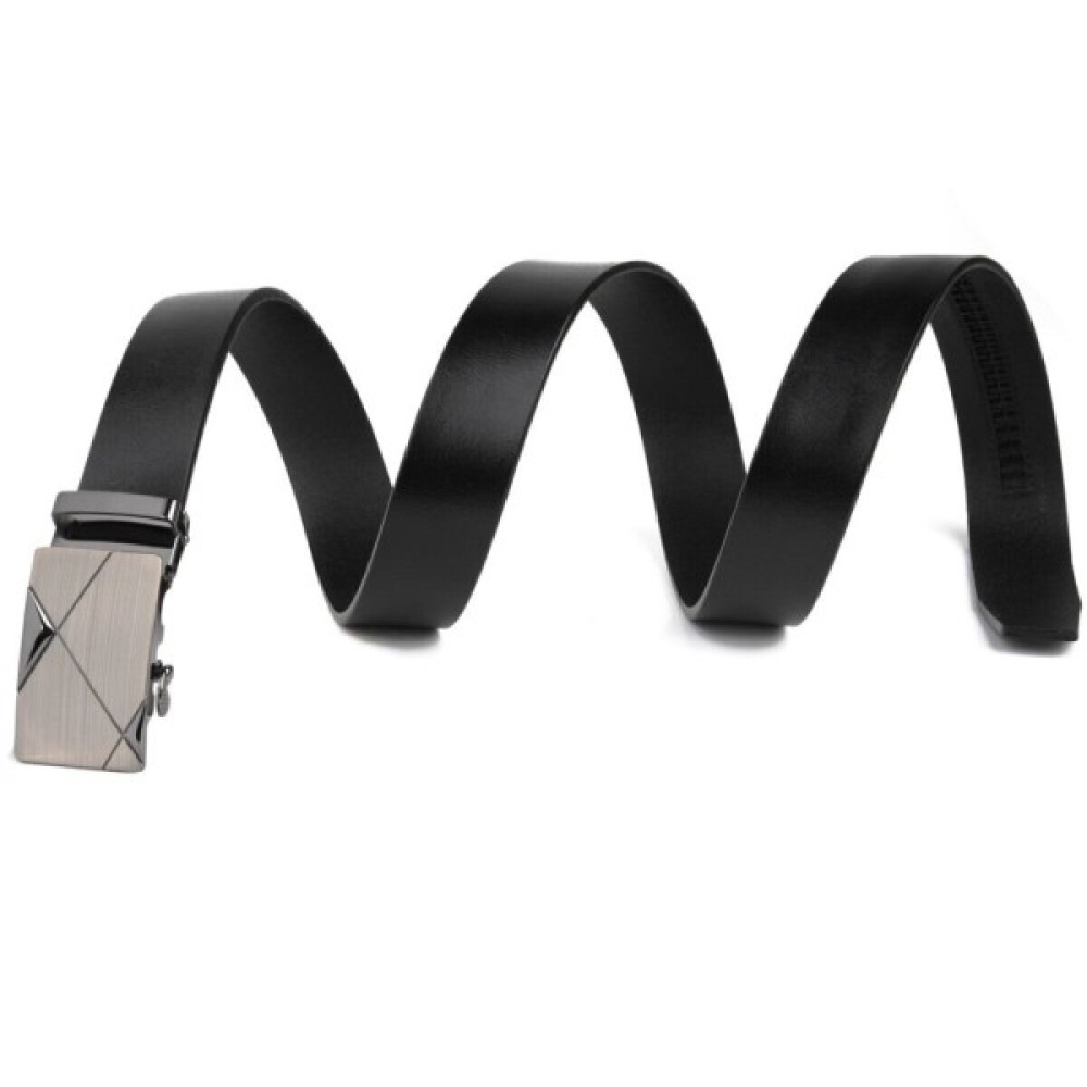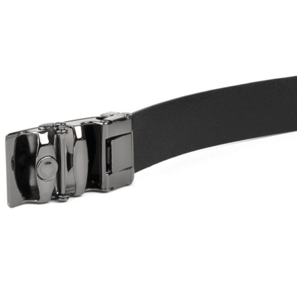 Чорний чоловічий ремінь з автоматичною пряжкою. Виріб виготовлено з натуральної шкіри найвищої якості. Доповнено ремінь оригінальною пряжкою з діагональним візерунком. Пряжка виконана з якісного сплаву.