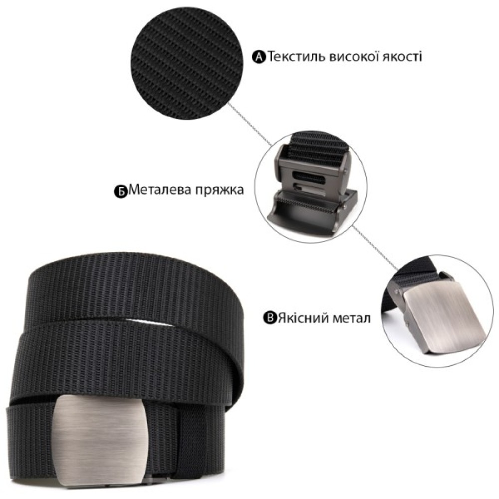Модель: Текстильний з сріблястою пряжкою Чорний