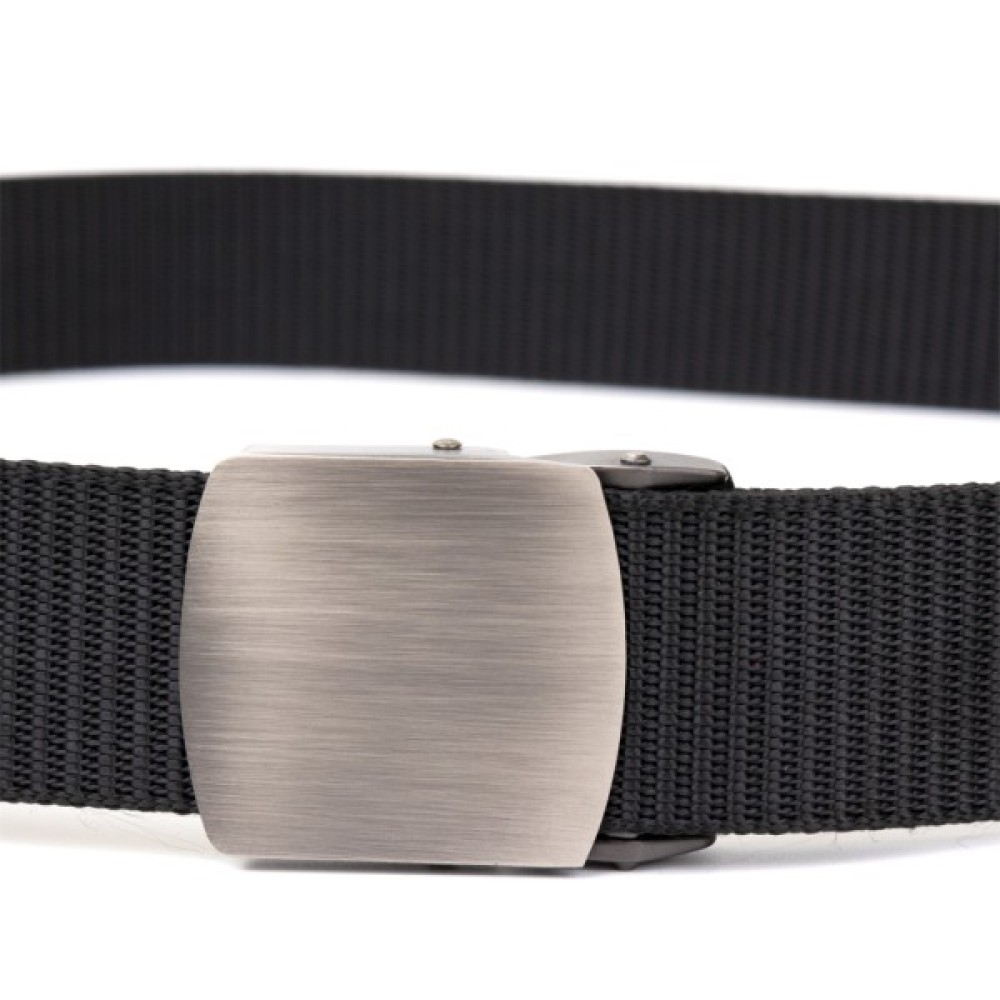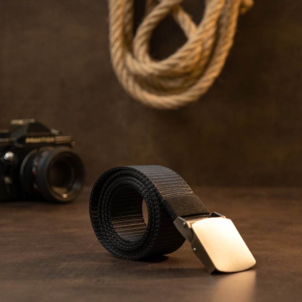 Текстильный ремешок в классическом черном цвете с квадратной серебристой пряжкой. Изделие имеет прекрасный внешний вид и современный дизайн. Текстильный ремешок подойдет под штаны и джинсы. Ремень — базовая часть любого мужского образа. С текстильным ремешком вы сэкономите ваши средства, при этом служит данная модель очень хорошо