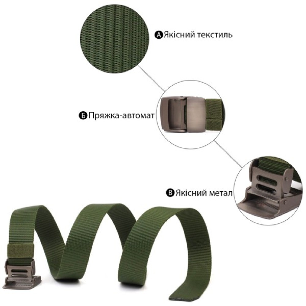 Виріб добротний, тканина щільна - не тягнеться. Доповнено ремінь якісною металевою пряжкою-автомат. Ширина ременя середня та добре підійде під джинси. Текстильний ремінець стане чудовою альтернативою шкіряному ременю.