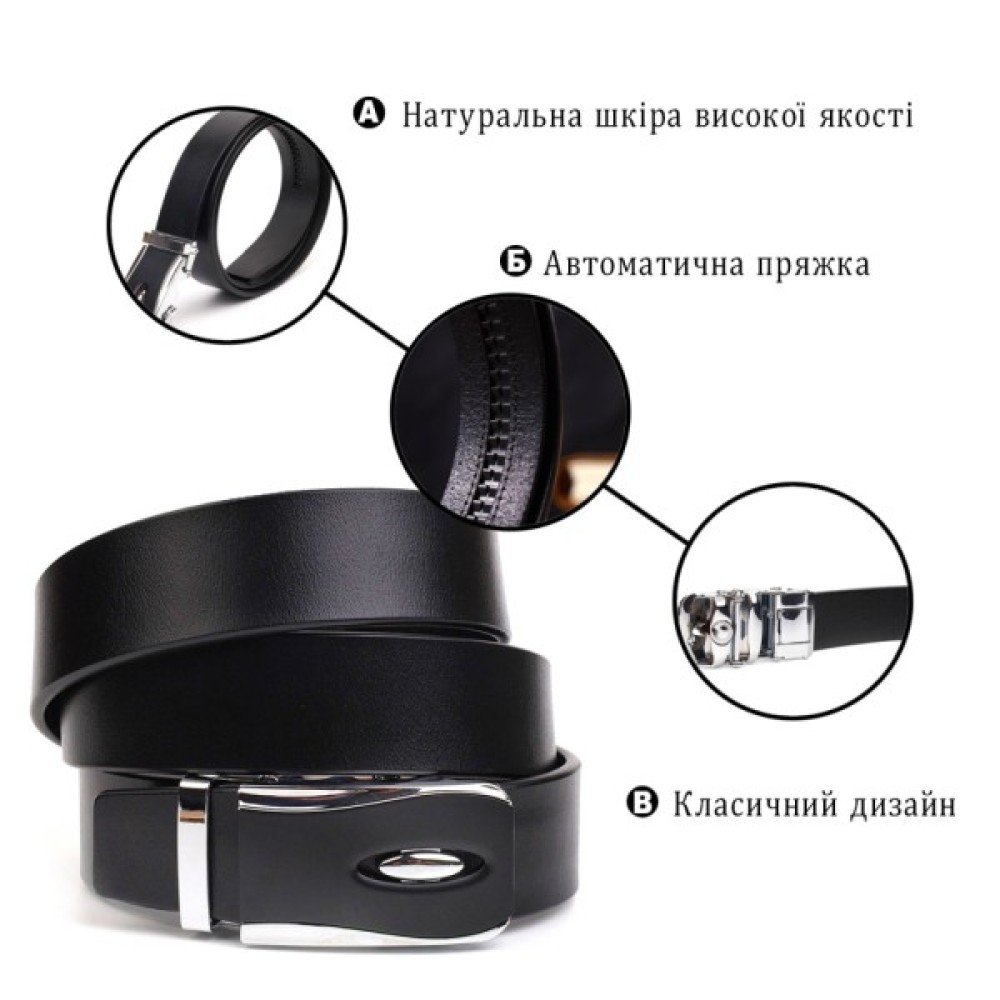 Модель: З пряжкою автомат з натуральної шкіри Чорний