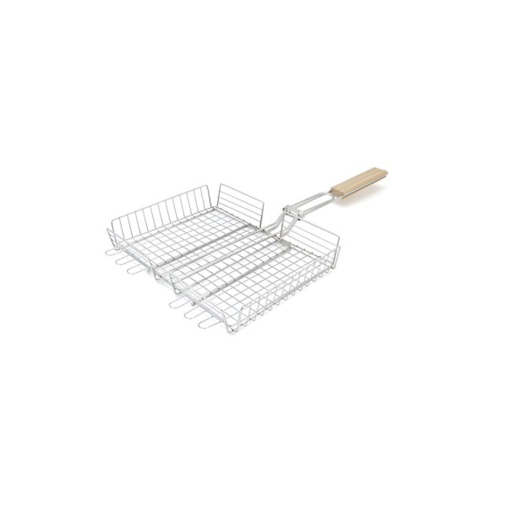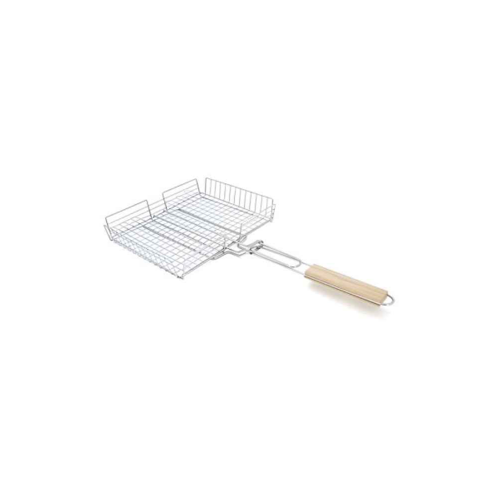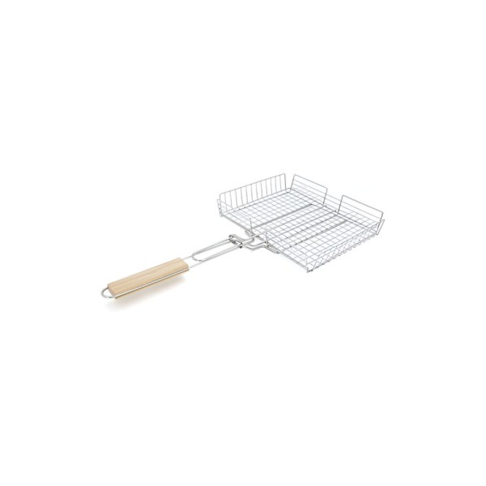 Решітка-гриль з високим бортом, розмірами 31x25x5 см, виготовлені з нержавіючої сталі, забезпечені ергономічною дерев'яною ручкою. Цей аксесуар забезпечує міцність та стійкість до високих температур, а високі борти запобігають випаданню продуктів. Дерев'яна ручка додає природний елемент до дизайну та забезпечує комфорт при використанні. Ідеально підходить для приготування різноманітних страв на грилі.