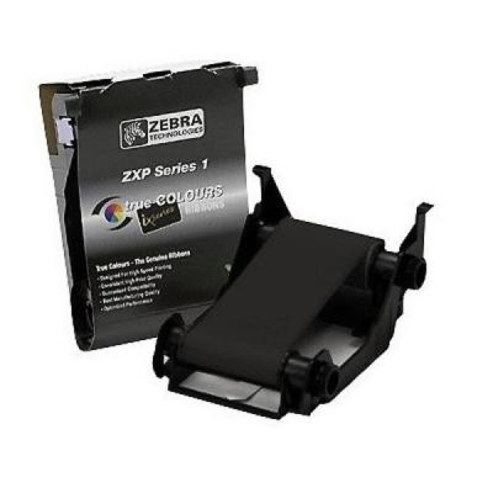Монохромна фарбувальна стрічка чорного кольору Zebra 800011-101 підходить для друку на принтері карт Zebra ZXP1 і має ресурс 1000 відбитків. Процес друку з монохромним ріббоном відрізняється від повнокольорового друку тим, що зображення формується за допомогою точок одного кольору, а не комбінацій кольорів.
