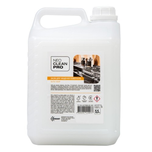 Ефективний лужний засіб Biossot NeoCleanPro Анти-жир для професійного та побутового використання. Має густу гелеву консистенцію та м'який приємний аромат.