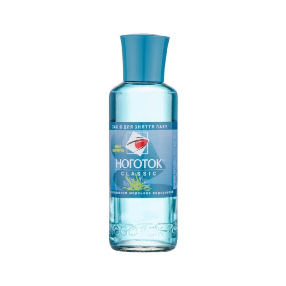Рідина для зняття лаку «Морські водорості» бренду «Ноготок» стане незамінною складовою кожної жіночої косметички. Вона представлена в рамках класичної лінії засобів відомого бренду «Ноготок» у зручних скляних флаконах. Це прекрасна можливість забезпечити нігтям красивий природний вигляд і додатковий догляд.