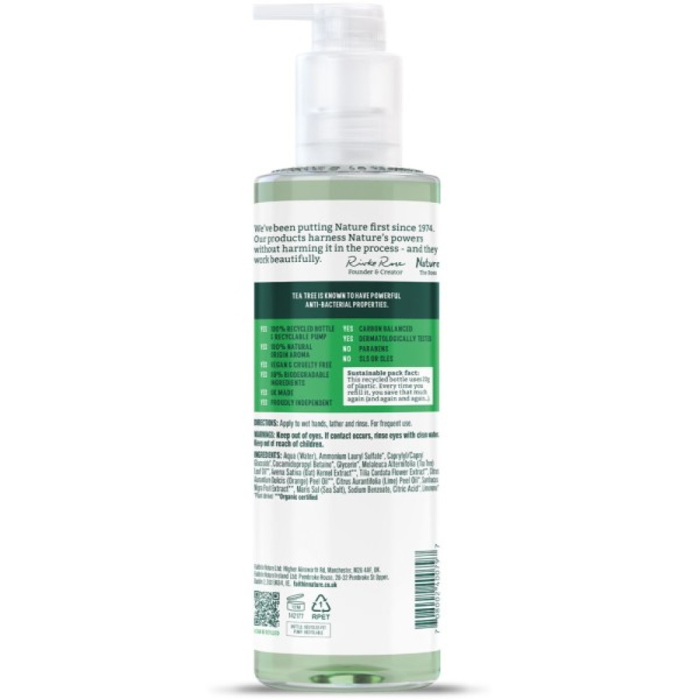 Подбайте про руки за допомогою Природи разом з нашим захисним рідким милом з чайним деревом, яке пройшло тестування на чутливій шкірі. Як і всі наші рідкі мила для рук, воно має спеціально розроблений базовий склад, що містить органічні екстракти вівса, квітки липи та бузини, щоб м'яко й ефективно очищати шкіру, водночас заспокоюючи і живлячи її. До цих активних інгредієнтів натурального походження ми додали органічну олію австралійського чайного дерева для захисту та догляду за шкірою рук.