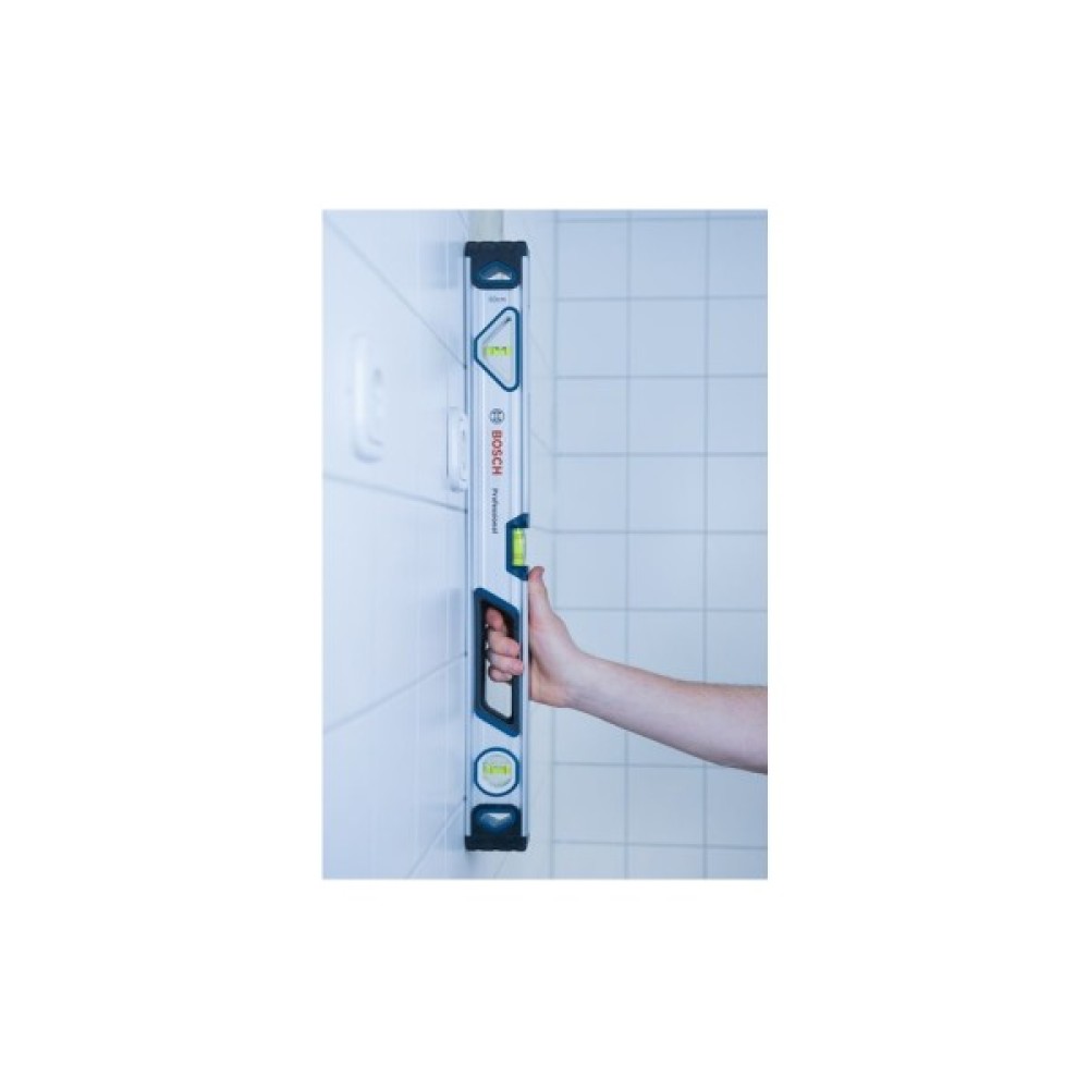 Рівень довжиною 60 см має міцний алюмінієвий корпус, блок-ампули та ударостійкі наконечники, які завдяки своїй високій міцності гарантують тривалий термін служби на будівельному майданчику. Наконечники з антиковзаючим покриттям допомагають запобігти відхиленням показань і забезпечують додаткову стійкість під час використання.