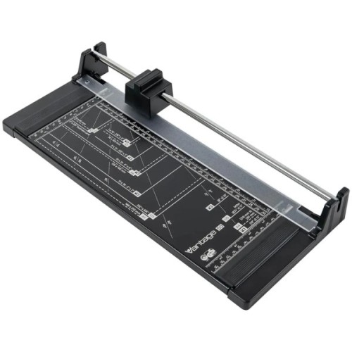 Різак для виконання невеликих обсягів робіт по порізці паперу. Довжина різу - 320 мм. Товщина стопи - 0,5 мм. На столі нанесена розмітка стандартних форматів паперу с мм-шкалою, включаючи фото розмір, а також мітки для різу під кутом. Дві напрямні упору для точності при порізці і зручності різання. Дисковий ніж цього різака при різанні щільно притискається до контрлеза, забезпечує процес самозаточування. Можливість різу в обох напрямках вздовж направляючої. Прозора пластикова напрямна щільно притискає папір під час руху ножа, забезпечує автопритиск, точне позиціонування і можливість спостерігати лінію різу в момент розрізання матеріалів. Металева основа. Прогумовані ніжки запобігають зміщенню різака при роботі. TM Dahle / Novus (Німеччина) - преміум-клас, різальне обладнання, техніка для офісу та офісні аксесуари.