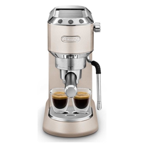 Dedica Arte поєднує в собі квінтесенцію італійського дизайну з можливістю створення ідеальної кави, укладеної в елегантну форму кавоварки шириною всього 15 см. Незважаючи на компактні розміри, вона характеризується високою ефективністю завдяки електронному контролю температури та швидкому нагріванню, яке займає всього 40 секунд. Нова насадка для спінювання молока My Latte Art дозволяє готувати смачні кавові напої з молоком та пишною піною, яка подається при оптимальній температурі завдяки функції підігріву чашки. Стильний та компактний дизайн у блискучому металевому корпусі сірого відтінку з матовим покриттям і тисненим логотипом роблять Dedica Arte окрасою будь-якої кухні.