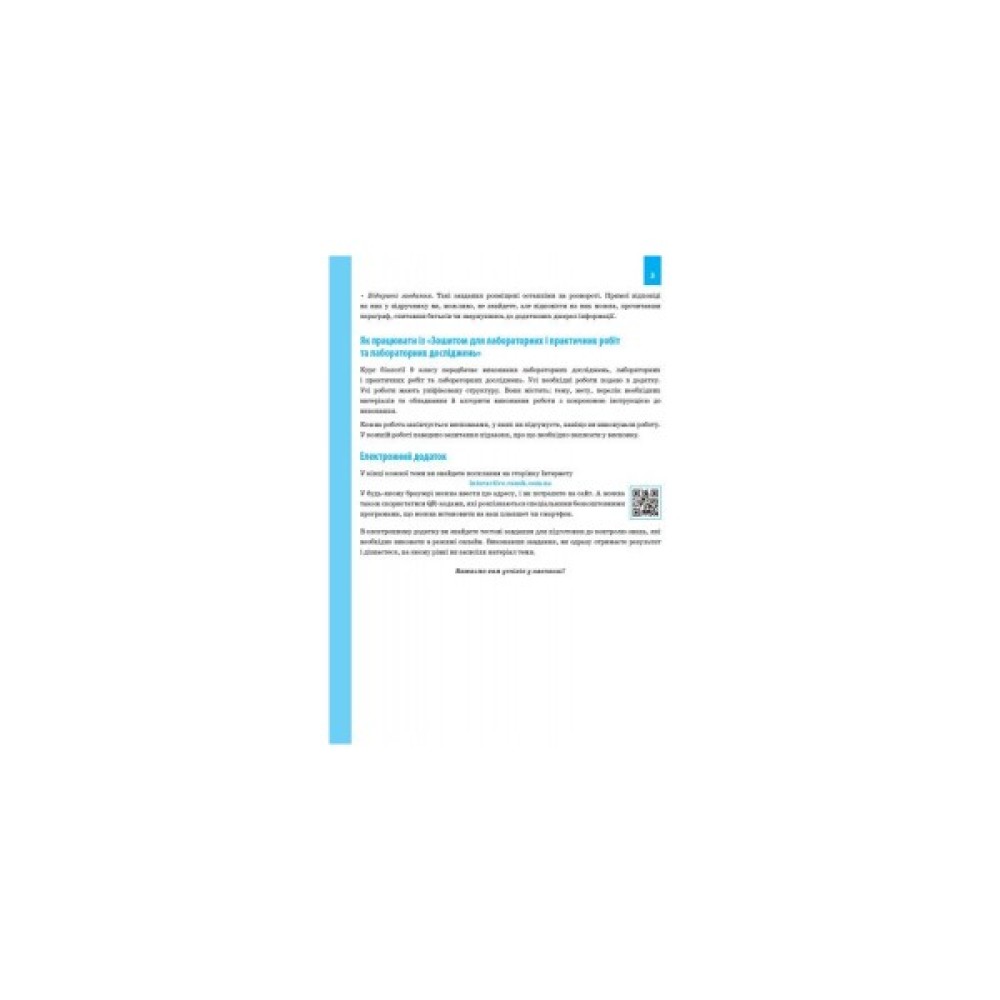 Додаток до зошита, що виймається з нього, містить алгоритми виконання всіх лабораторних і практичних робіт та лабораторних досліджень, передбачених програмою.