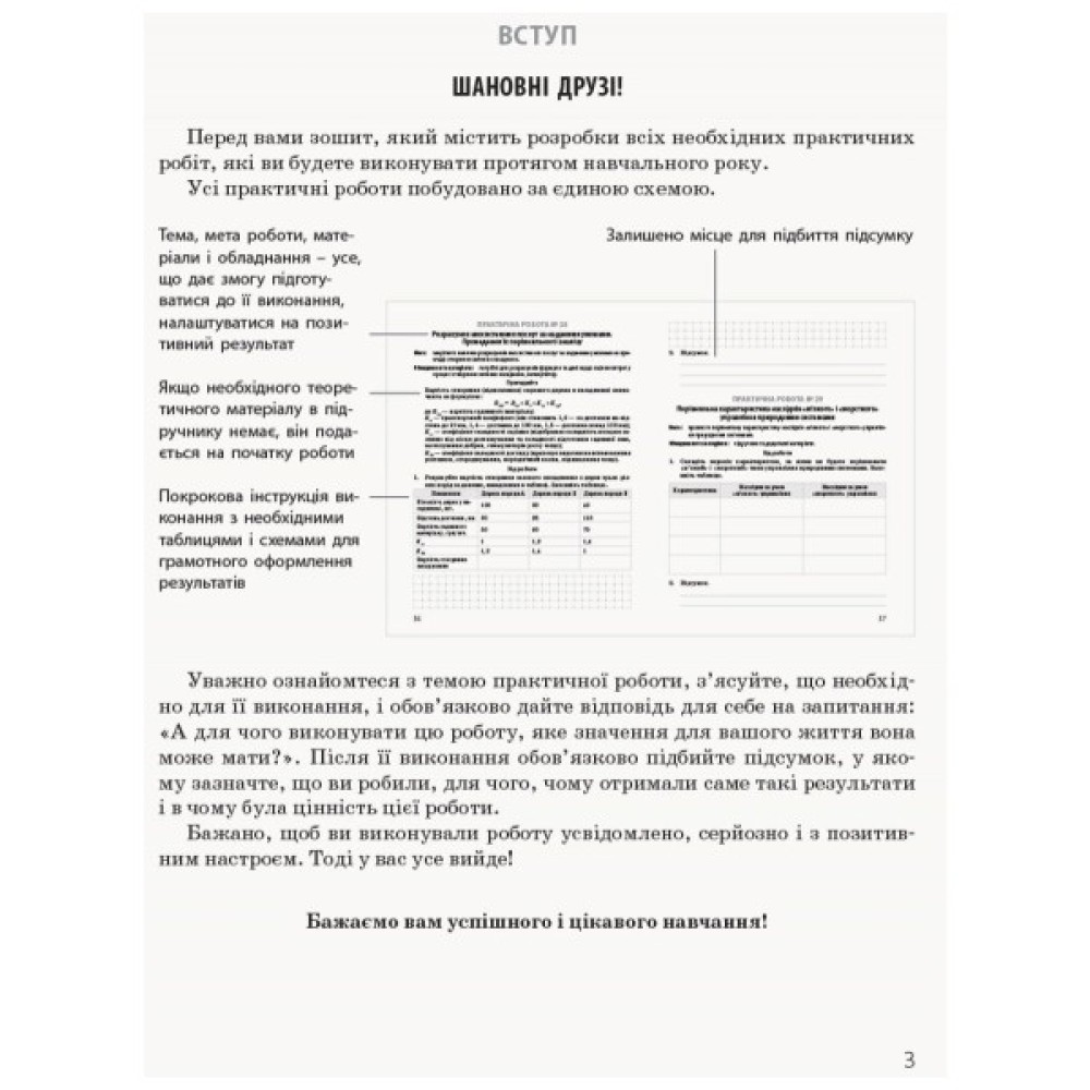 Зошит містить покрокові інструкції для виконання всіх практичних робіт, передбачених чинною програмою з біології і екології профільного рівня. Класичну структуру запропонованих робіт доповнюють теоретичні відомості та ілюстрації.
