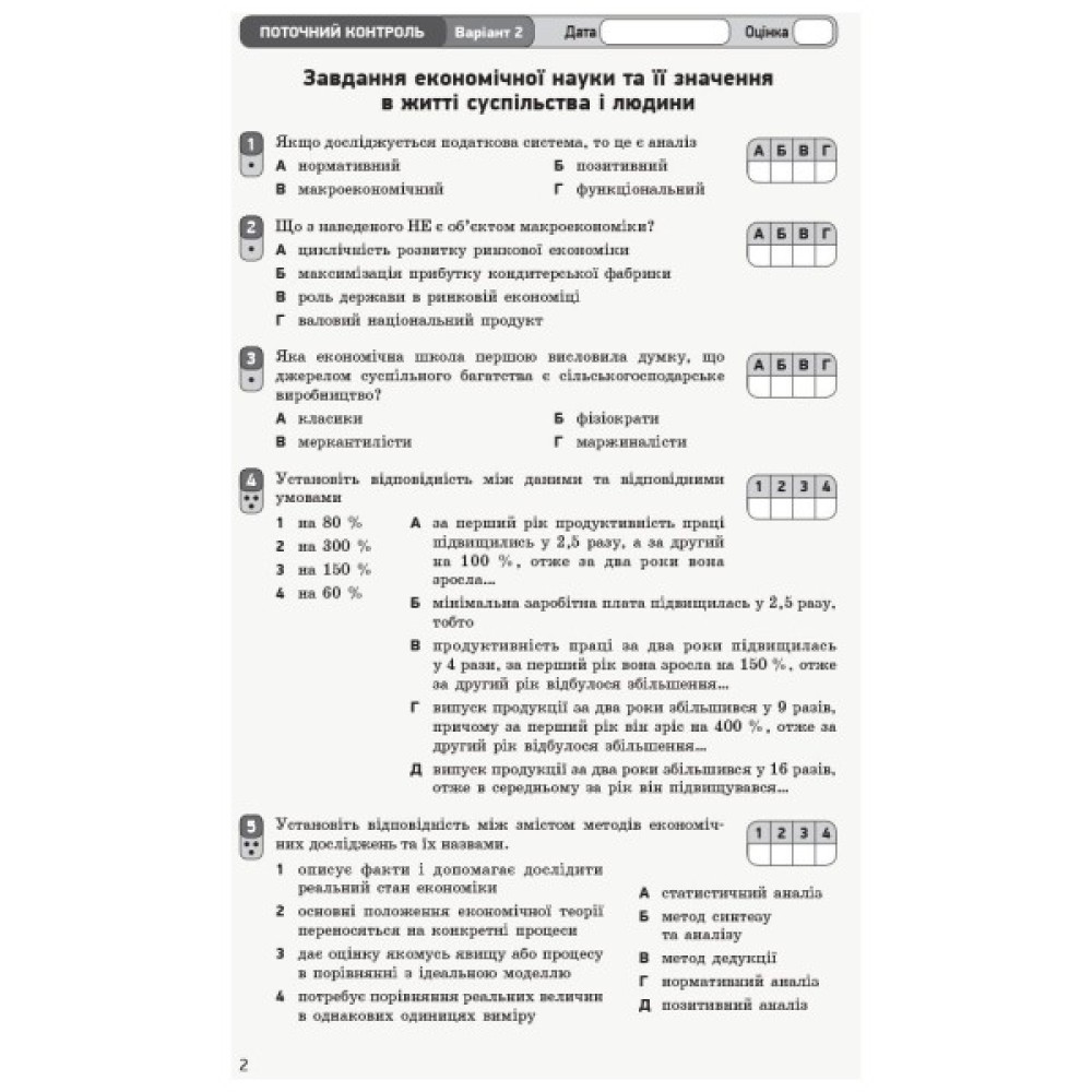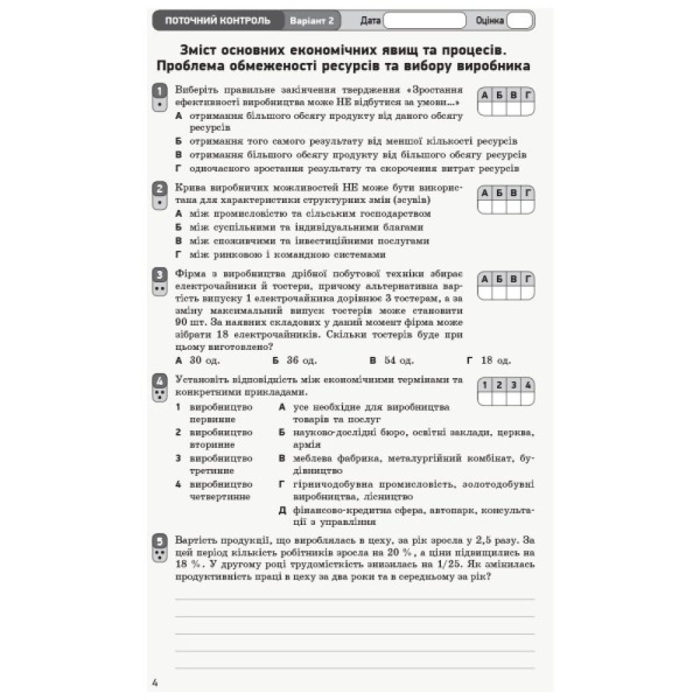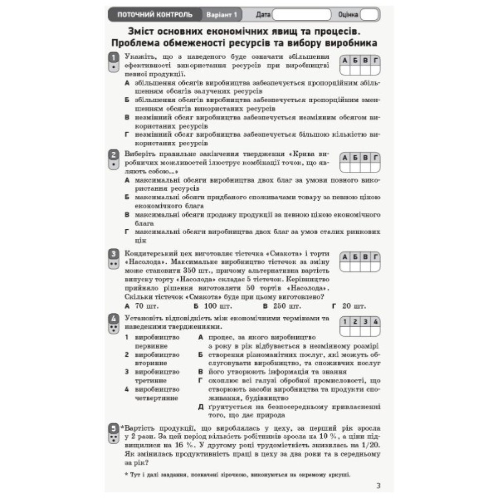 Посібник містить завдання для поточного та тематичного оцінювання результатів навчання учнів 10-х класів з курсу «Економіка (профільний рівень)».