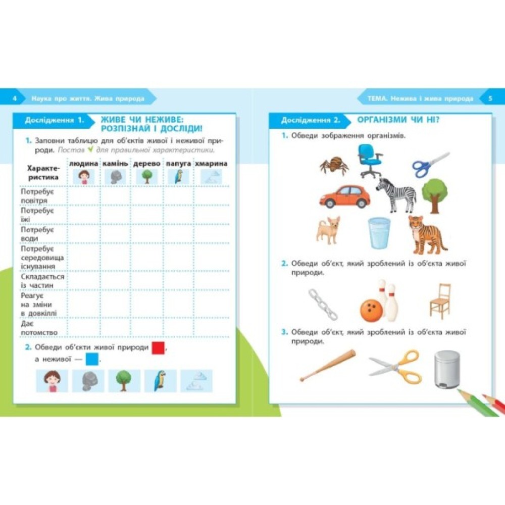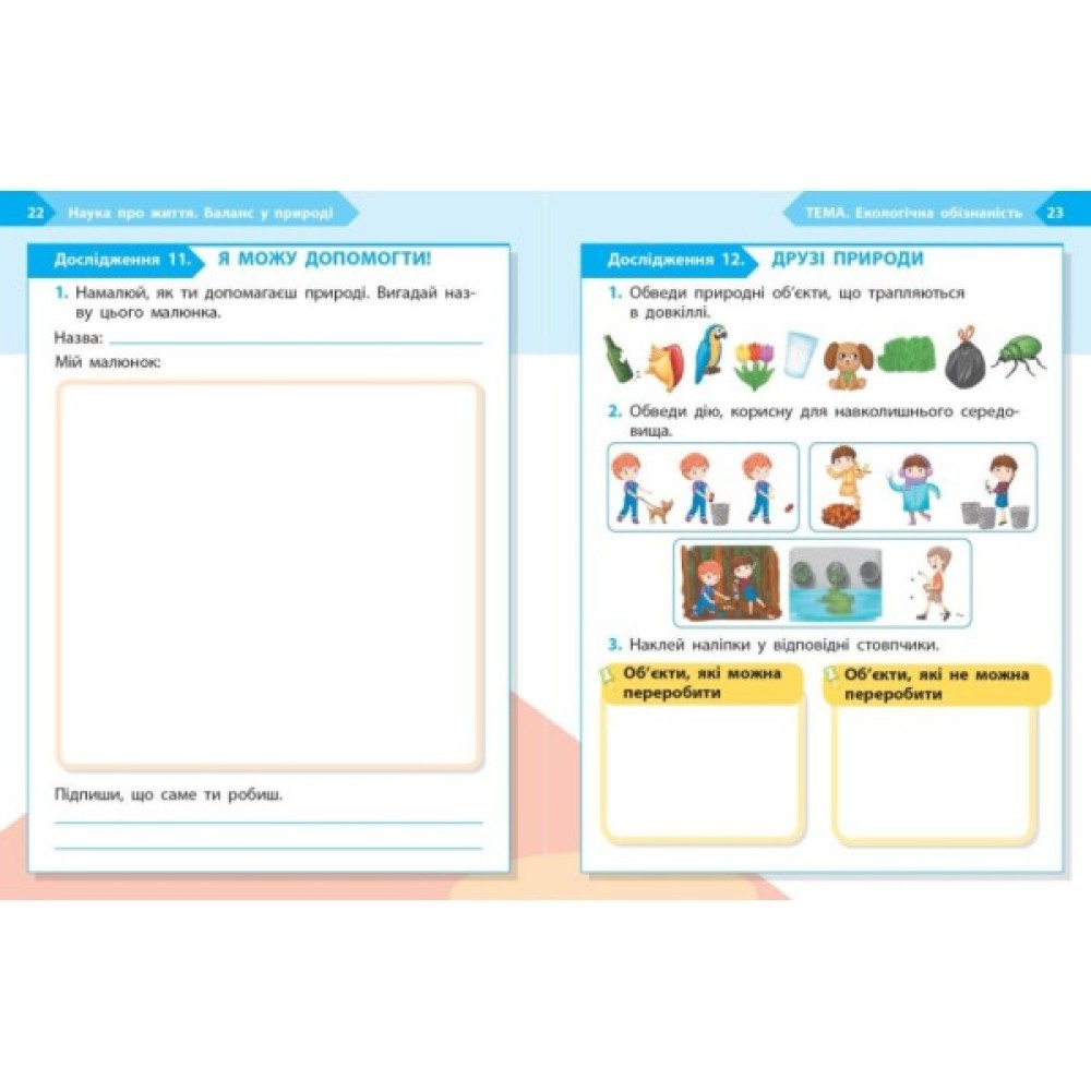 Зошит є складовою навчально-методичного комплекту «STEM-старт». Матеріал посібника спрямований на формування початкових уявлень про живу й неживу природу, потреби істот і взаємозв’язки в довкіллі. Через спостереження, малювання, прості завдання та експерименти учні й учениці дізнаються, що потрібно рослинам і тваринам для життя, як помічати зміни в природі та чому важливо берегти навколишній світ.