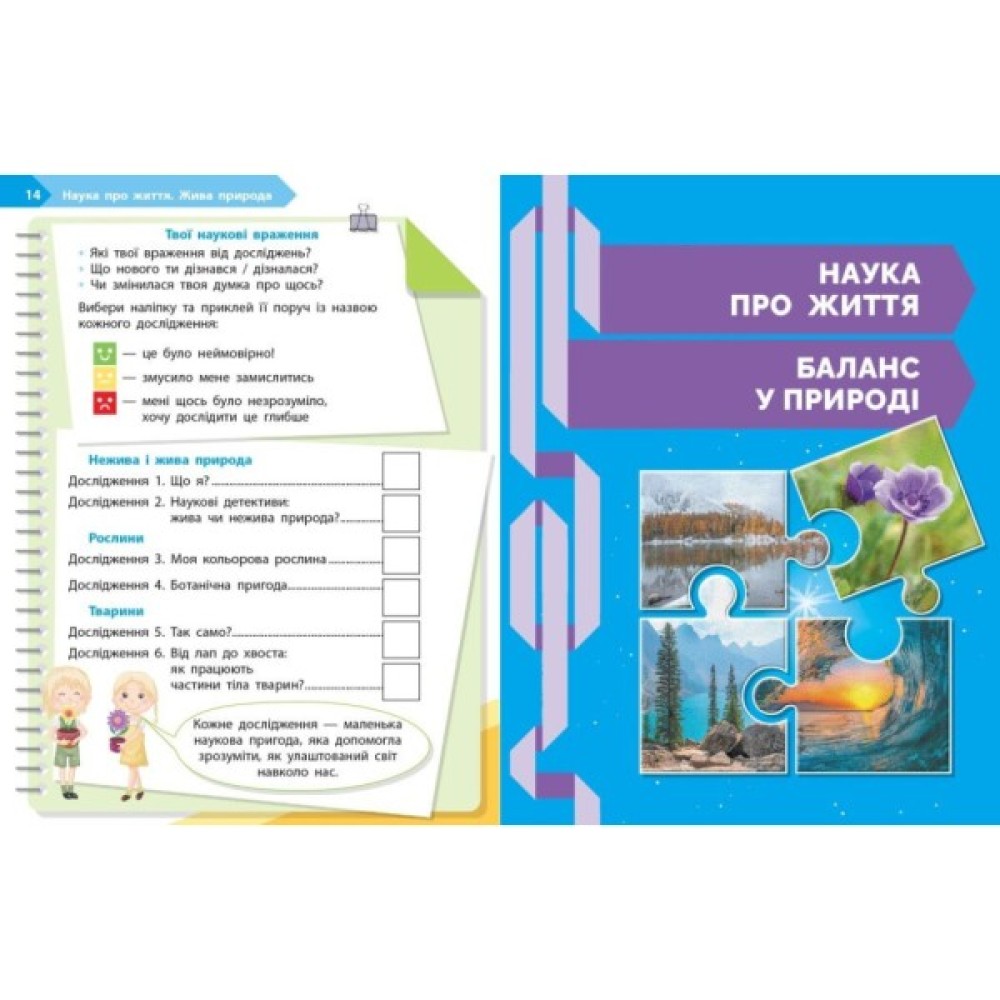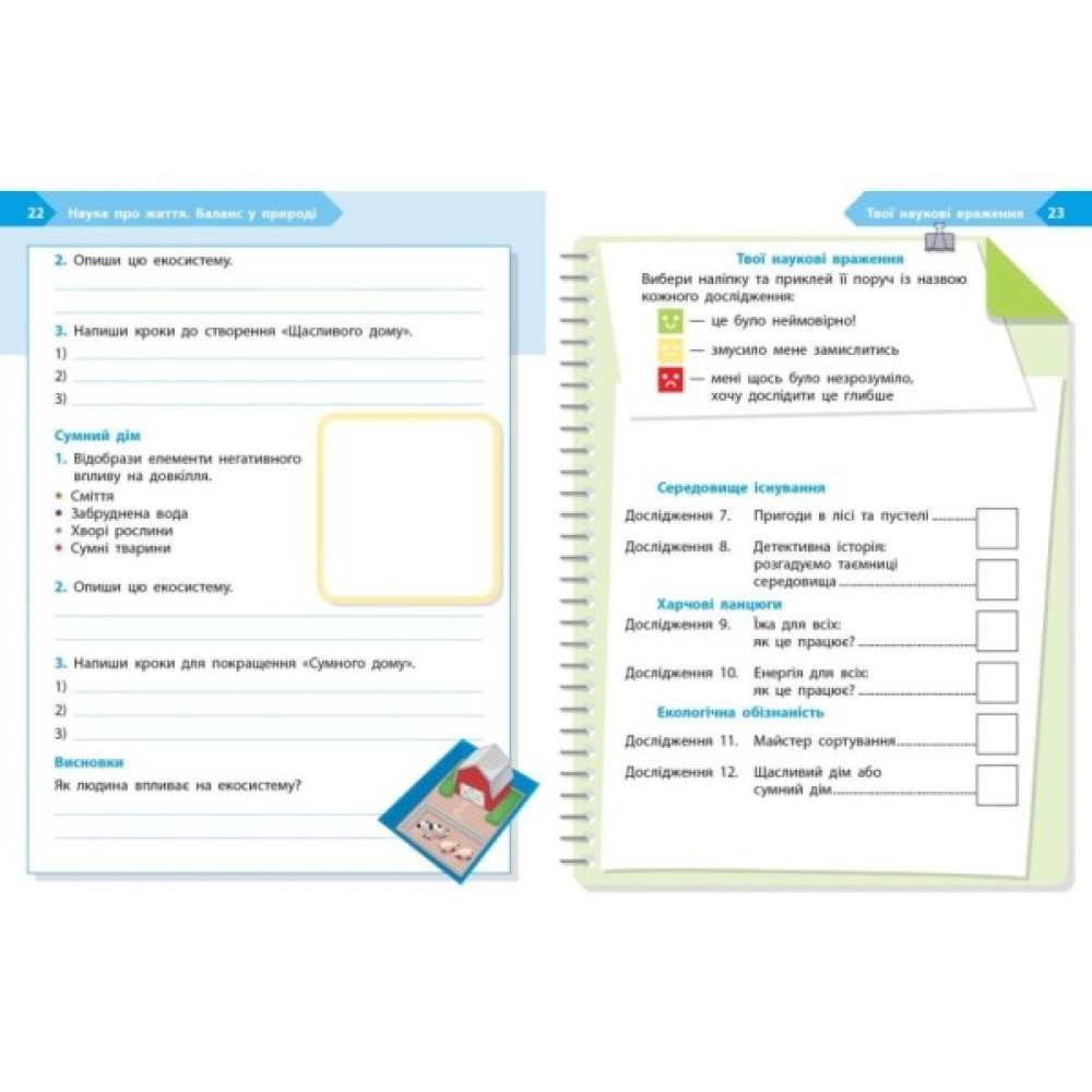 Зошит є складовою навчально-методичного комплекту «STEM-старт». За допомогою цього посібника учні й учениці поглиблюють розуміння природи як взаємопов’язаної системи. Діти досліджують середовища існування, дізнаються, як рослини й тварини пристосовуються до змін, як працюють харчові ланцюги та чому важливо зберігати природну рівновагу. Завдання зошита допомагають розвивати навички спостереження, аналізу, пояснення природних процесів і турботливого ставлення до довкілля.