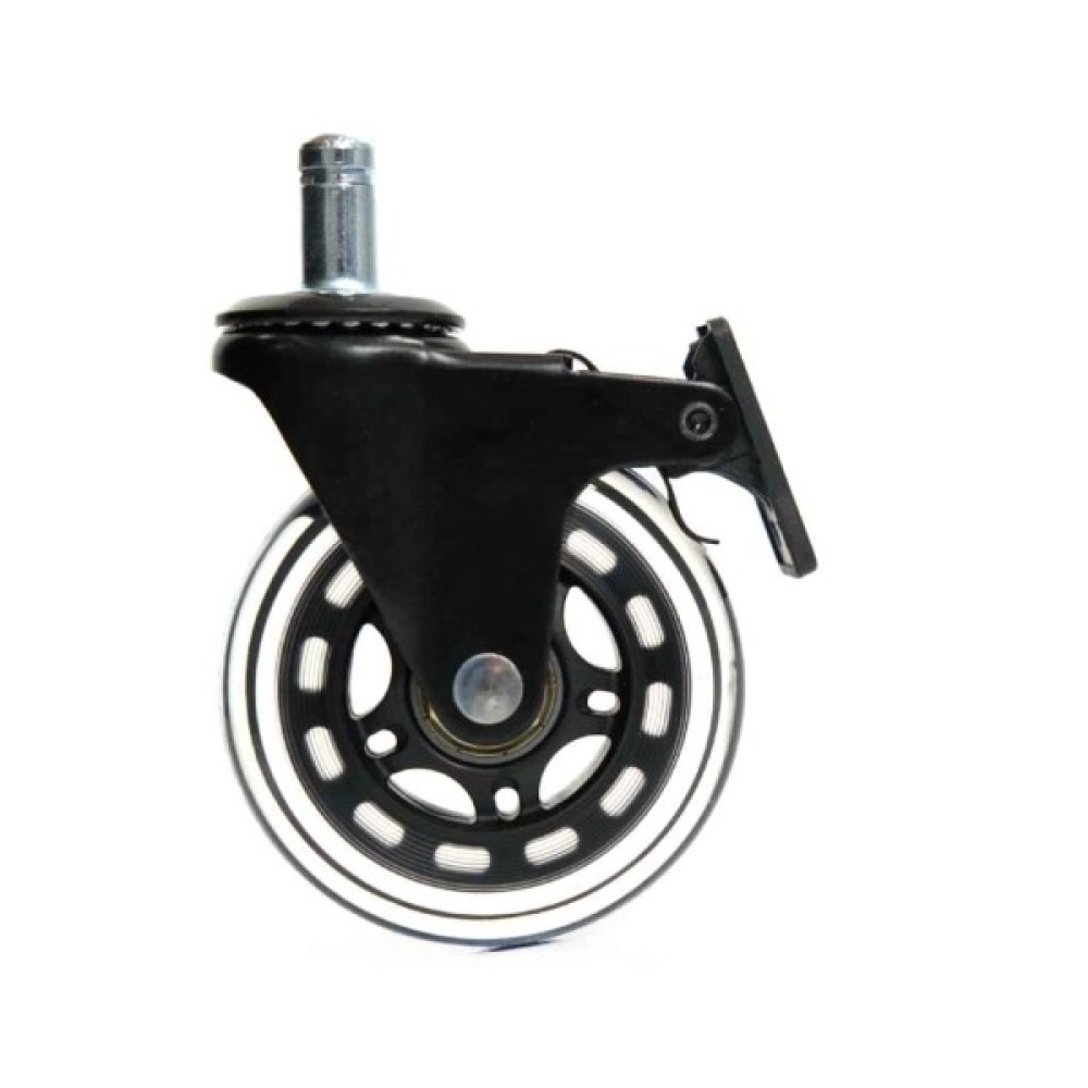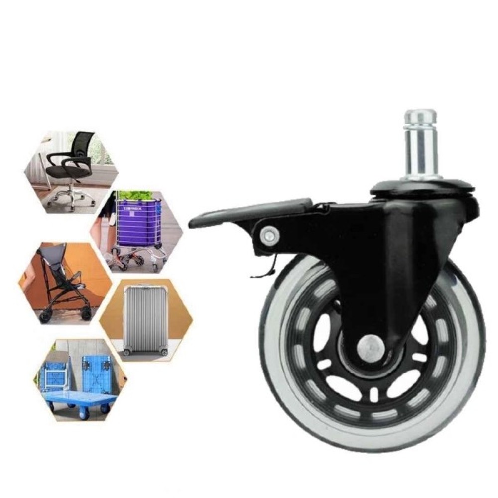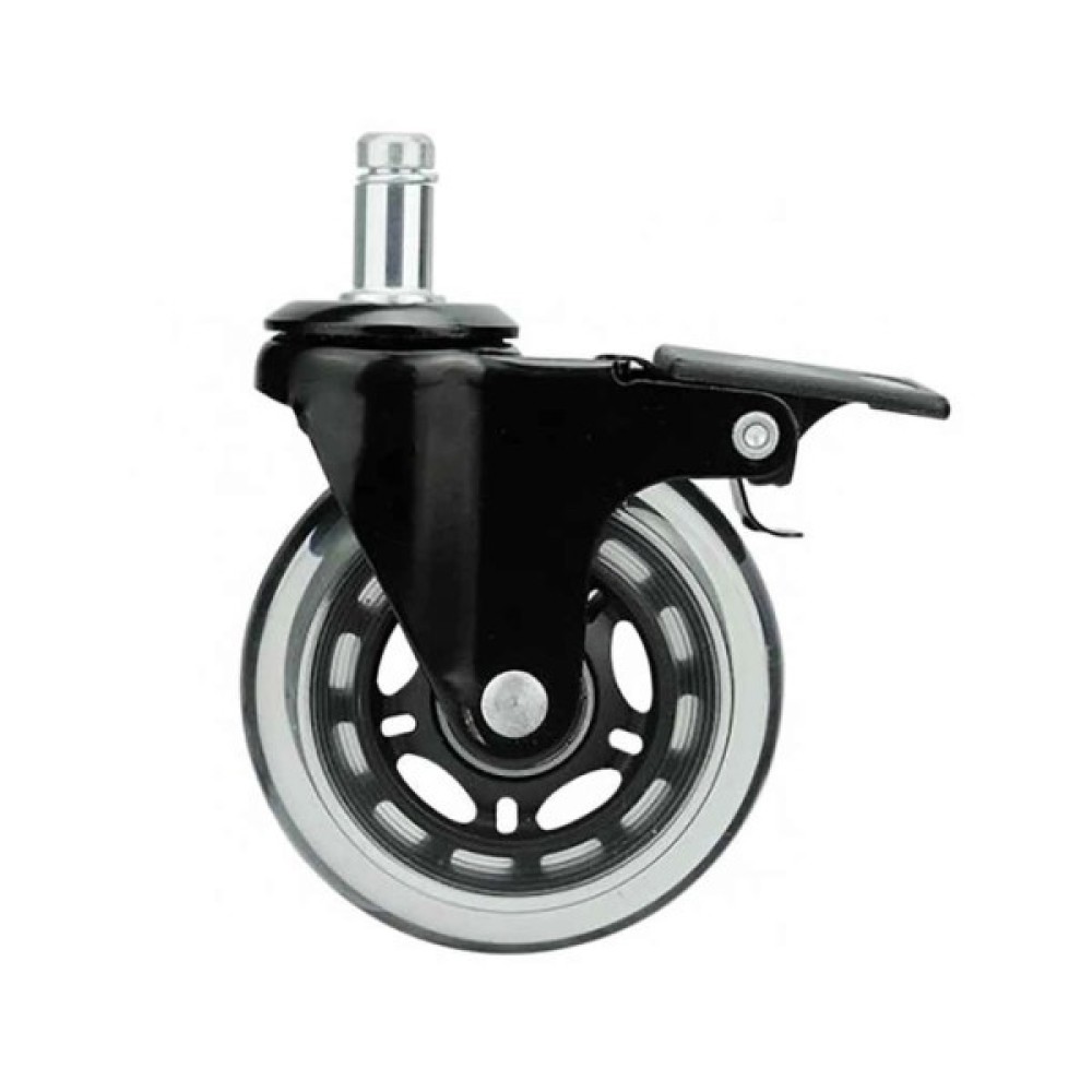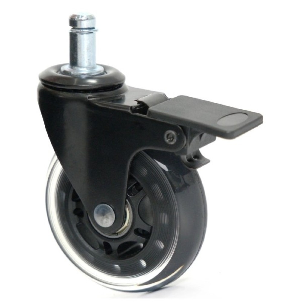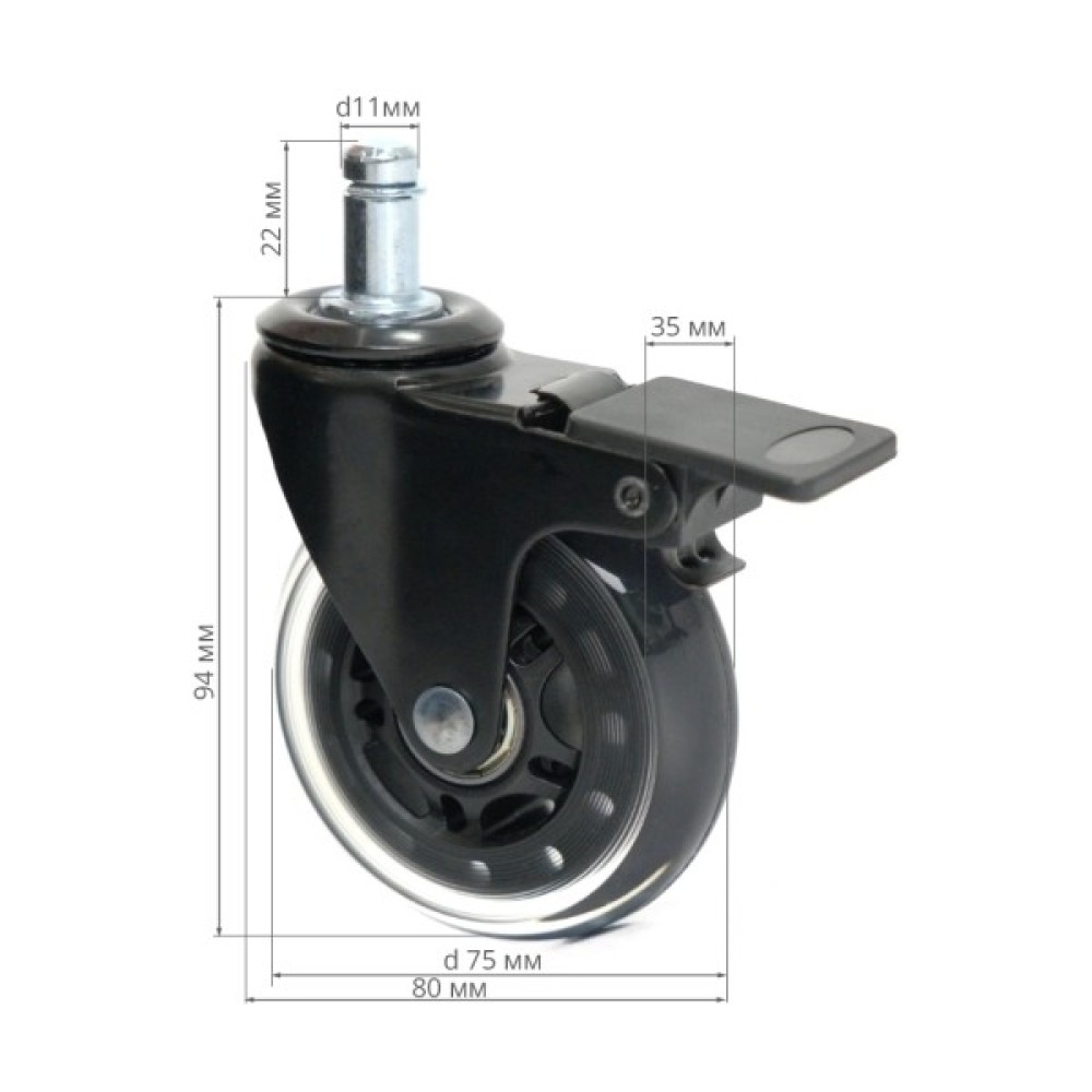 Ролик АКЛАС FI 11 безшумний зі стопором D-75 (Прозорий) універсальний для використання на: крісла офісні, письмові столи, тумби під телевізор, візки, каркаси ліжок, комоди, стільці, столи, табурети, ящики для інструментів і т.д. де конструкцією передбачено встановлення роликів з віссю 22х11 мм.