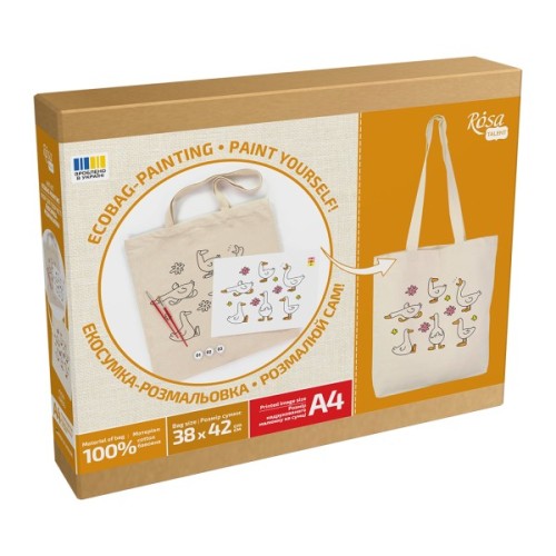 Екосумка ROSA Talent– виготовлена зі 100% бавовняної тканини. Щільний якісний матеріал та надійна фіксація ручок дозволяє витримувати навантаження вагою до 15 кг. Розпис екосумки ROSA Talent - надзвичайно захоплюючий та водночас легкий процес, адже контури малюнку вже нанесені на основу. Розписана власноруч сумка стане яскравим стильним та практичним аксесуаром, що доповнить щоденний образ!