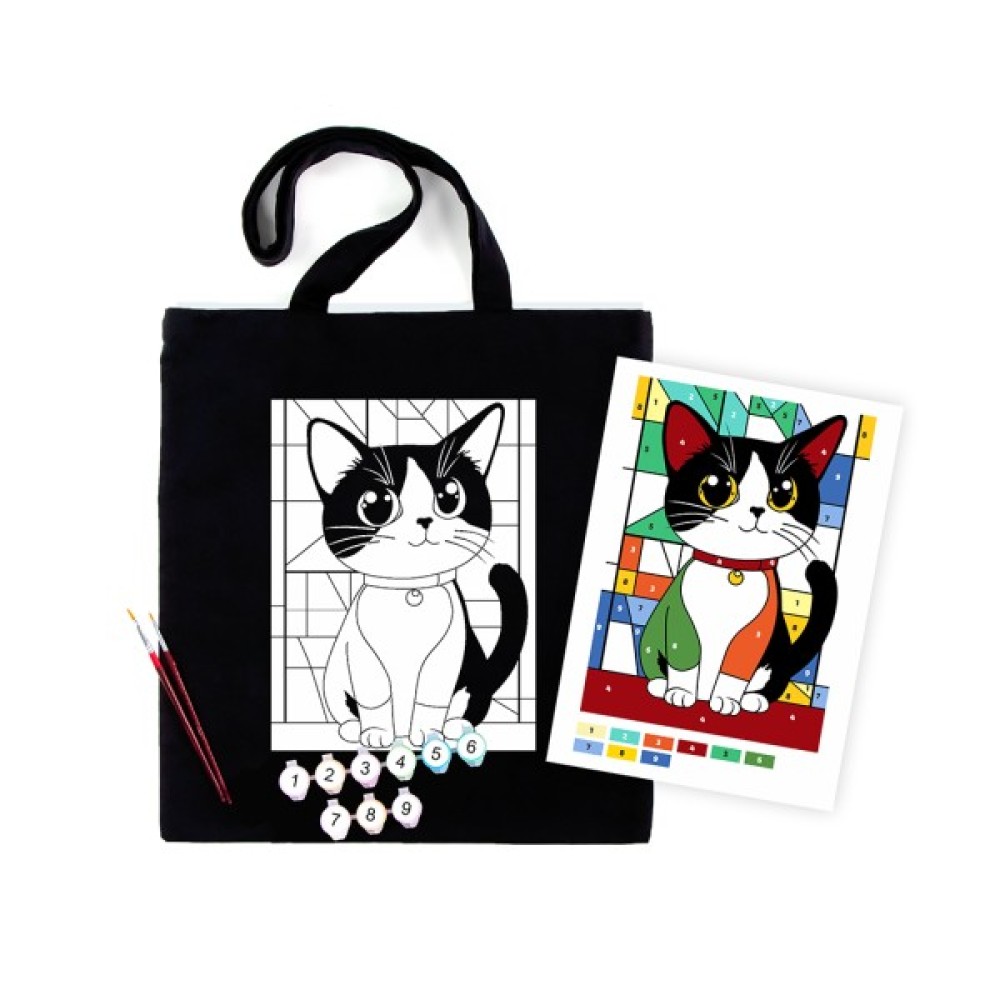 сумка, фарби, пензлі, схема, етикетка з покроковою інструкцією