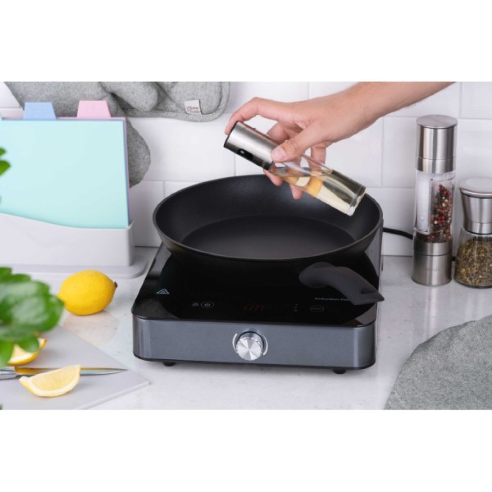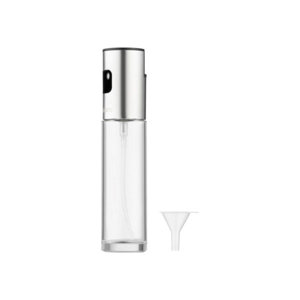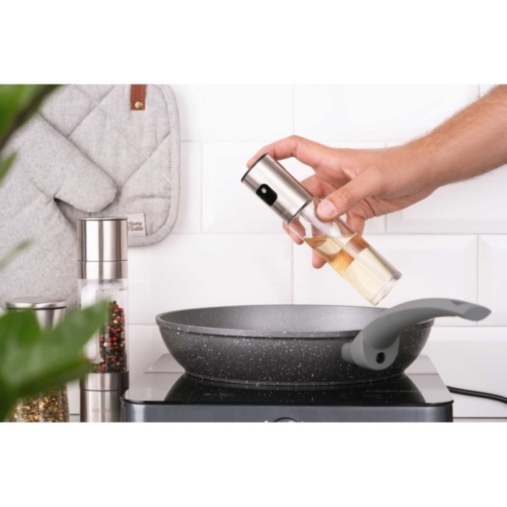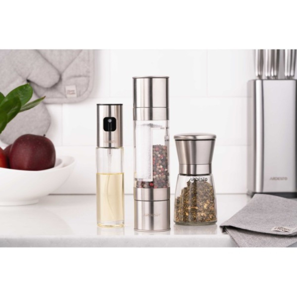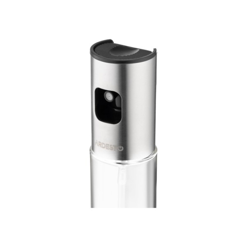 За допомогою розпилювача ARDESTO Gemini можна рівномірно нанести на продукти необхідну кількість олії чи оцту. Стане в пригоді для заправки салатів, під час смаження чи випікання. Складається з двох частин: ємності об’ємом 100 мл і власне розпилювача, який надійно фіксується. Виготовлено з міцного скла, нержавіючої сталі та пластику. Мити в посудомийній машині не можна.