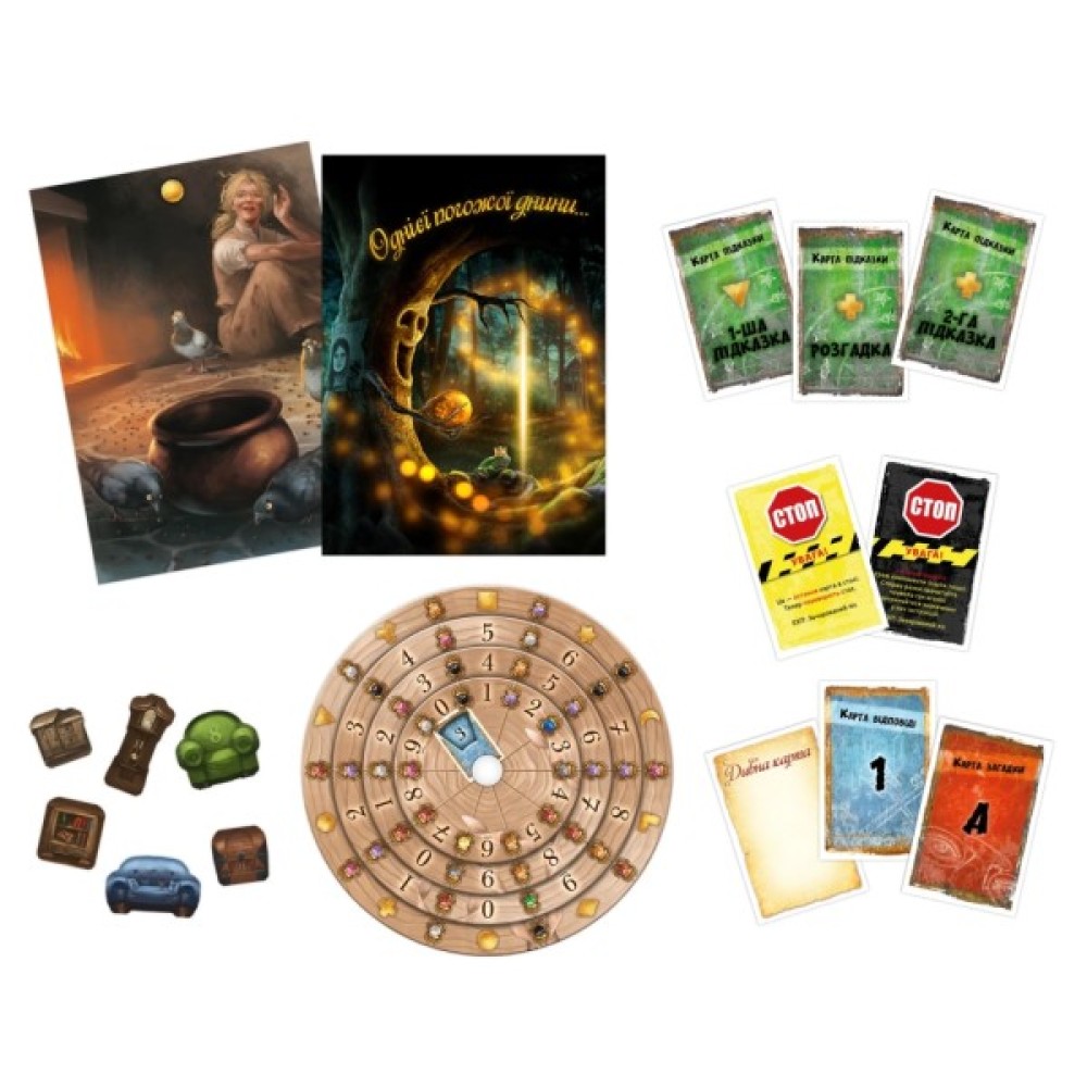 Комплектація 30 карт підказок, 30 карт відповідей, 19 карт загадок, 9 дивних карт, 1 книга, 1 диск-декодер, 6 меблів, 1 карта «Люшка/чечевиця», 1 крижаний кристал, 1 падуча зірка, 1 червоний лист