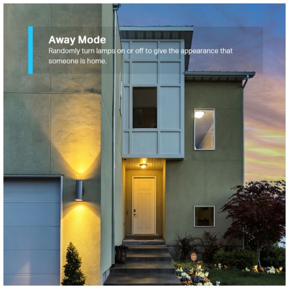 Функція «Не вдома» створює видимість того, що вдома хтось є, періодично вмикаючи та вимикаючи підключені пристрої (наприклад, лампу). Забезпечте додатковий захист від зловмисників, перебуваючи в поїздці.