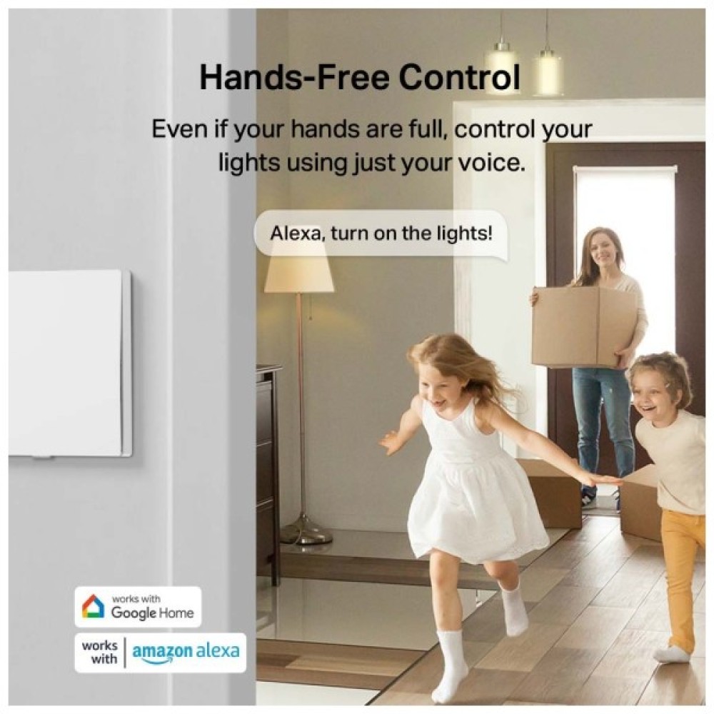 • Голосове Керування– Керуйте комутатором за допомогою голосових команд через Amazon Alexa або Google Assistant.