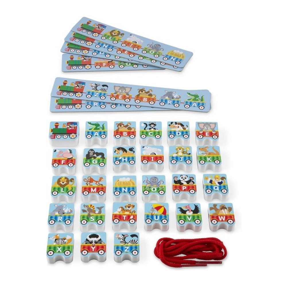 Розвиваюча, іграшка, MelissaDoug, дерев'яна, шнурівкапаровозик, Алфавіт, MD9497