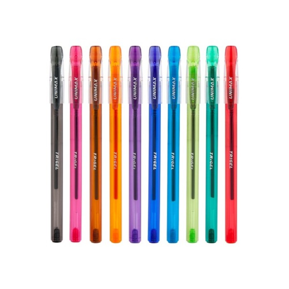 Ручка, гелева, Unimax, набір, Trigel3, асорті, кольорів, 05, мм, 10, кольорів, корпусу, UX13220