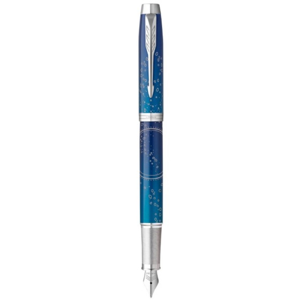 Parker IM Last Frontier Submerge CT FP F (Special Edition) - перова ручка зі спеціальної колекції 2021 року, присвяченої сміливим дослідженням найзагадковіших куточків Всесвіту. Преміальний інструмент із колекції Last Frontier в дизайні Submerge (Занурення) увічнює незвідані води світового океану.