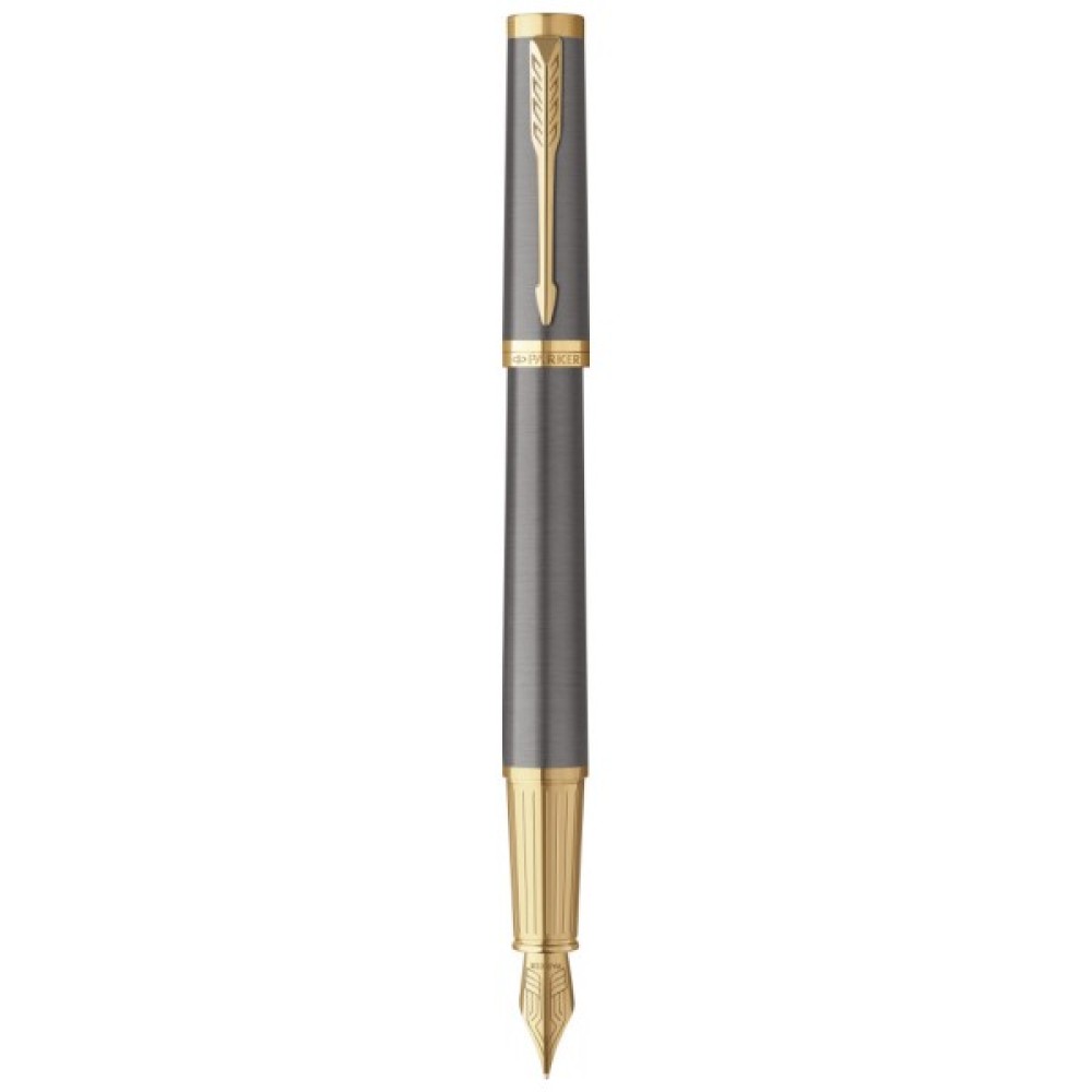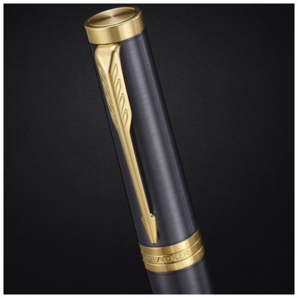 Parker INGENUITY Grey Lacquer GT 60 411 - преміальна перова ручка з тонким сталевим пером із золотим PVD. Сіро-золотий дизайн Ingenuity – це розкішна колекція, яка міцно позиціонується як зразок вишуканості Parker. Складна деталізація та золоте PVD-покриття ідеально поєднуються з латунним ковпачком та корпусом, красиво оздобленим класичним сірим лаком. Фірмовий дизайн, який представляє саму суть елегантності та стриманості Parker. Ручки Ingenuity створені з розрахунком на наполегливість, дозволяючи стати автором свого успіху. Ідеально підійде чоловікові, але й жінок не залишить байдужими.