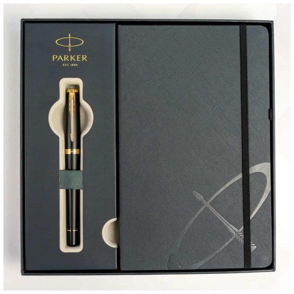 Тверда палітурка: сіра з логотипом Parker.