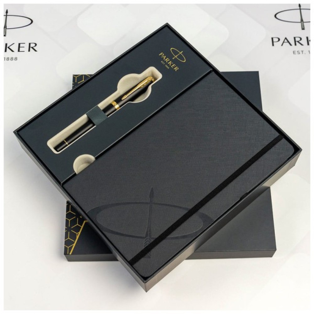 Набір із перовою ручкою Parker URBAN Muted Black GT FP F та блокнотом у подарунковій коробці. Чорний матовий дизайн ручки з оздобленням позолотою та сталевим пером. Модель представлена в урбаністичній лінійці Urban. Ергономічний силует із металевим корпусом та пластиковою глянцевою зоною тримання дозволить вам насолоджуватися ідеально збалансованим письмом. Сучасне перо забезпечує незабутній та індивідуальний досвід письма.